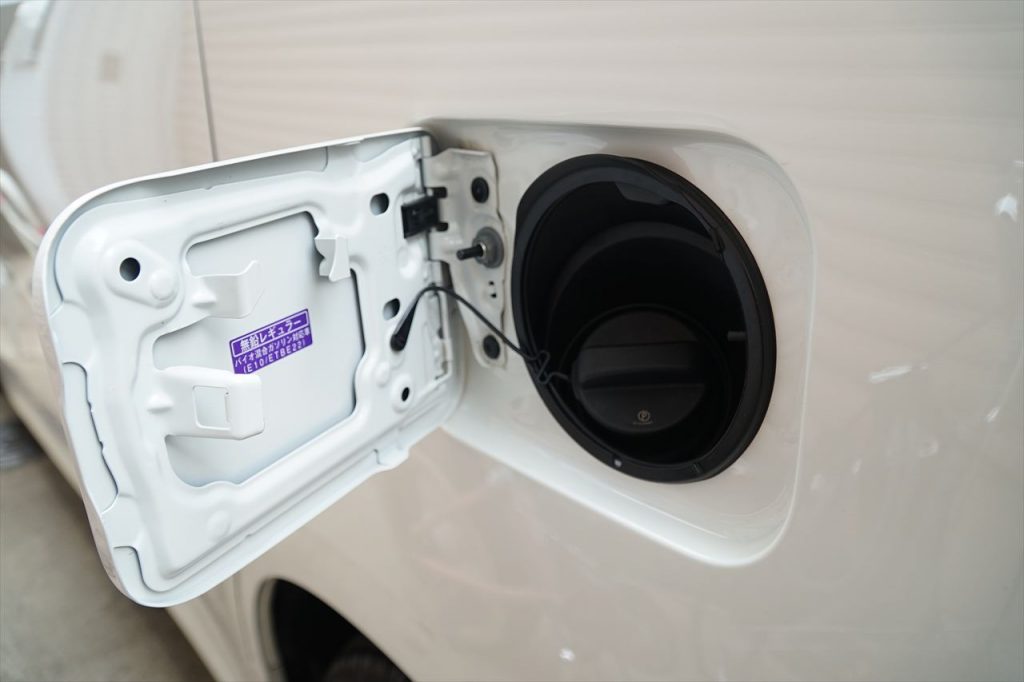 給油口は左側、助手席ドア付近にあります。燃料はガソリンはレギュラーです。