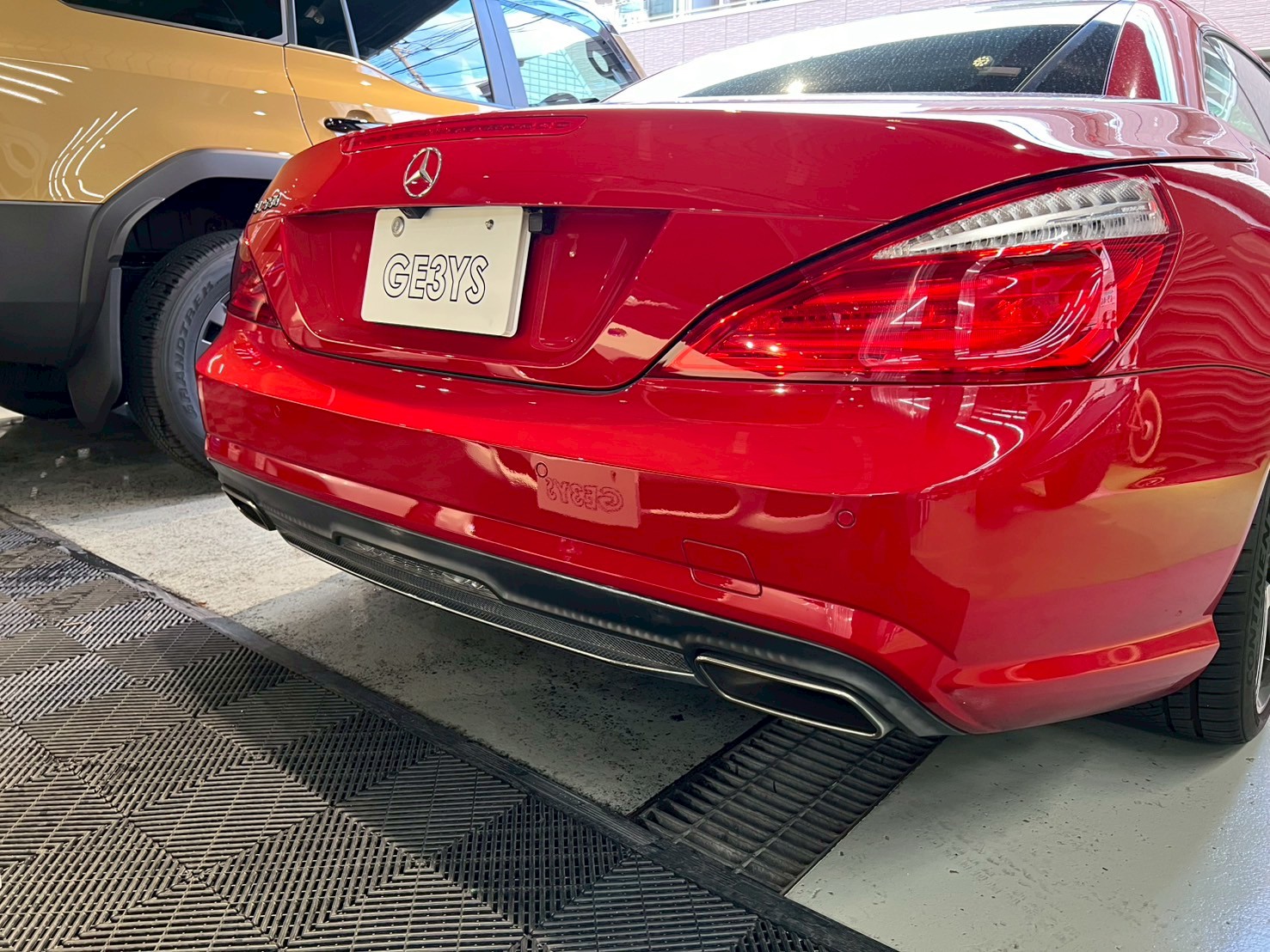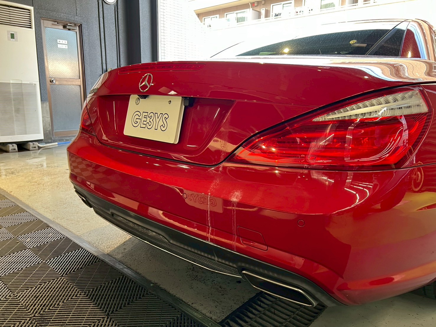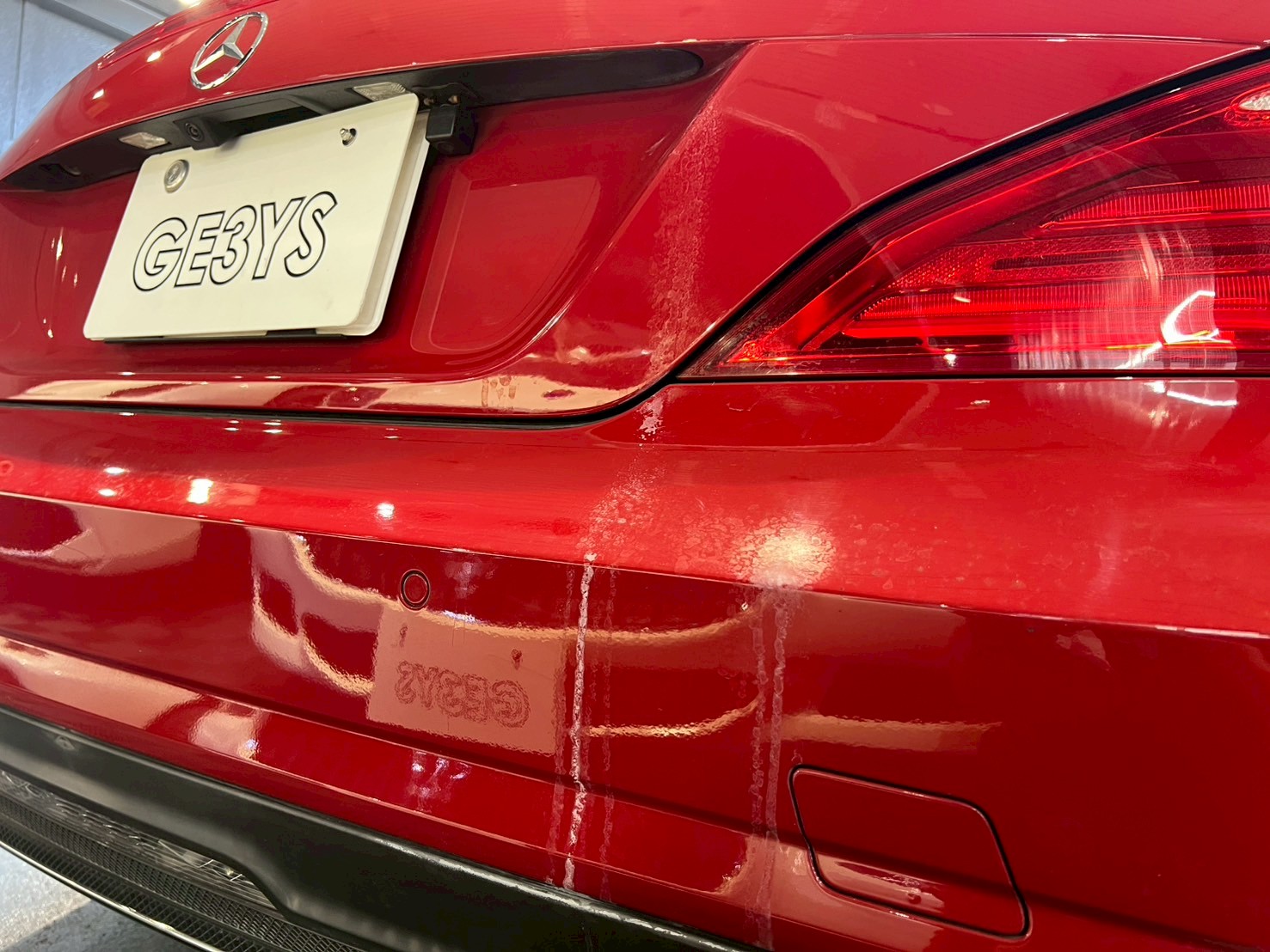 今回のメルセデスベンツ SL350は、気づいたら不純物が多く含まれた液体が垂れて、蒸発して跡になってしまい、洗車では落とせなくなってしまったとのご相談です。