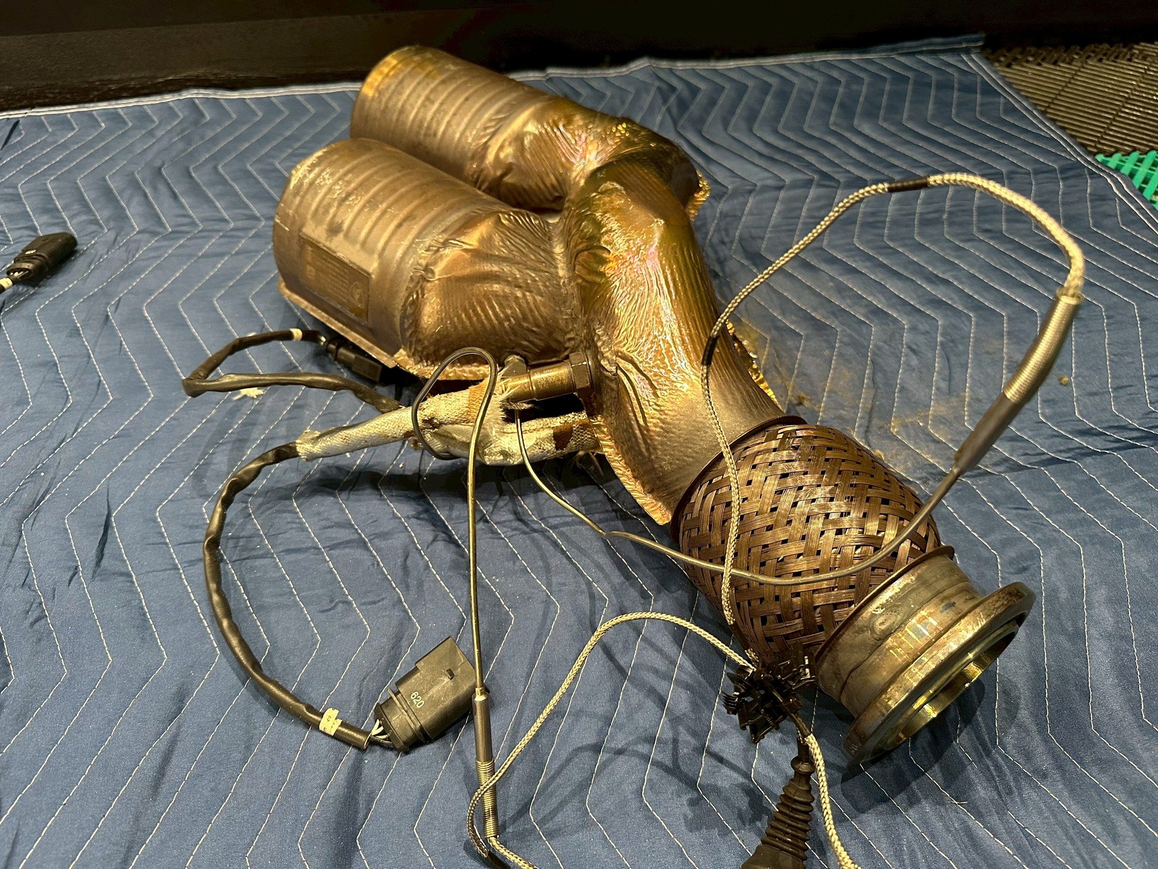 車検対応のため、パワークラフト製マフラーを純正マフラーへ戻す作業を行いました。