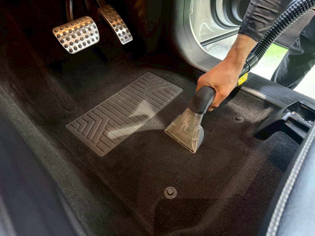 すぐに吸引ノズルで水と一緒に汚れを吸い取り、必要に応じて数回繰り返します。