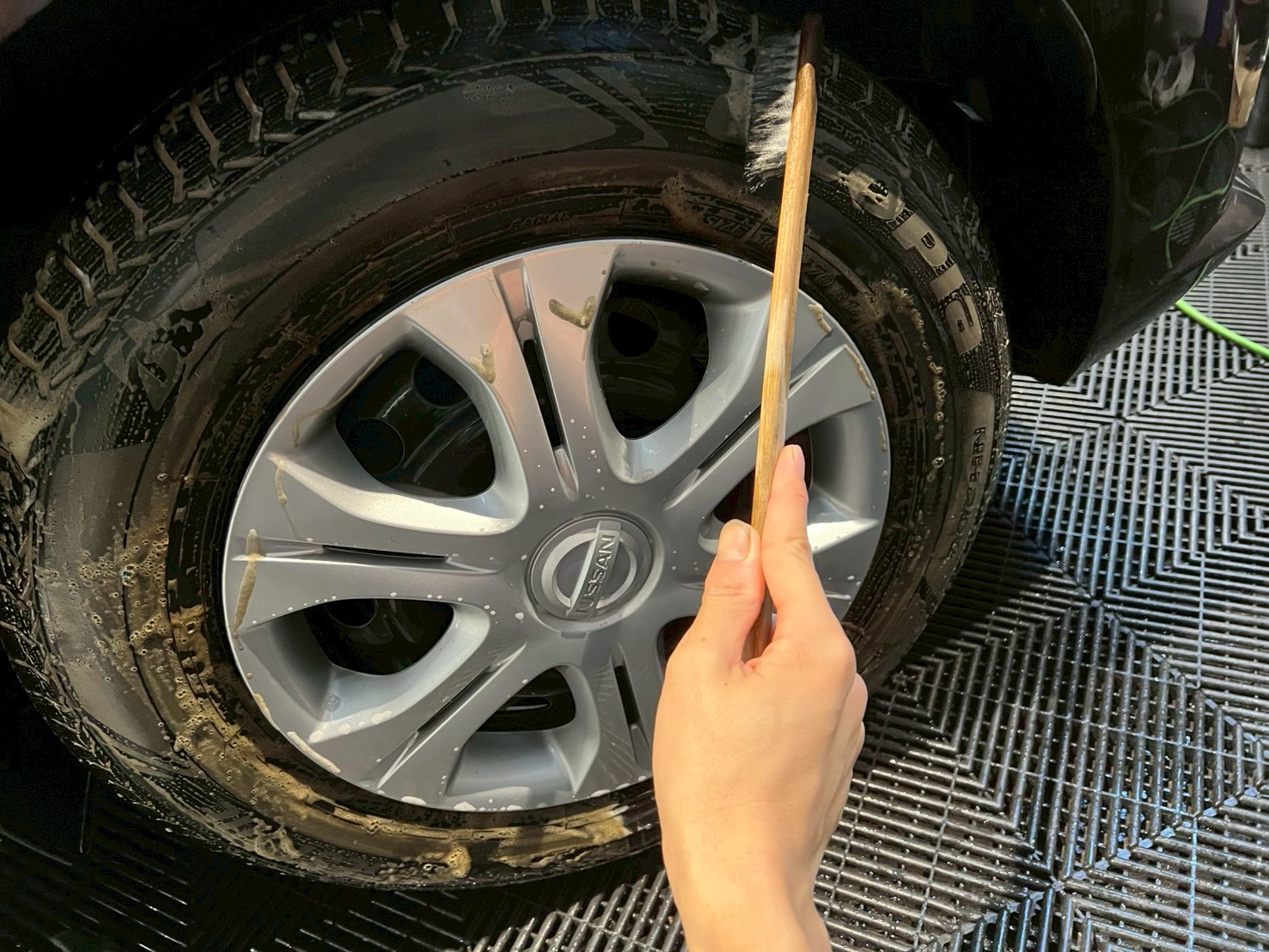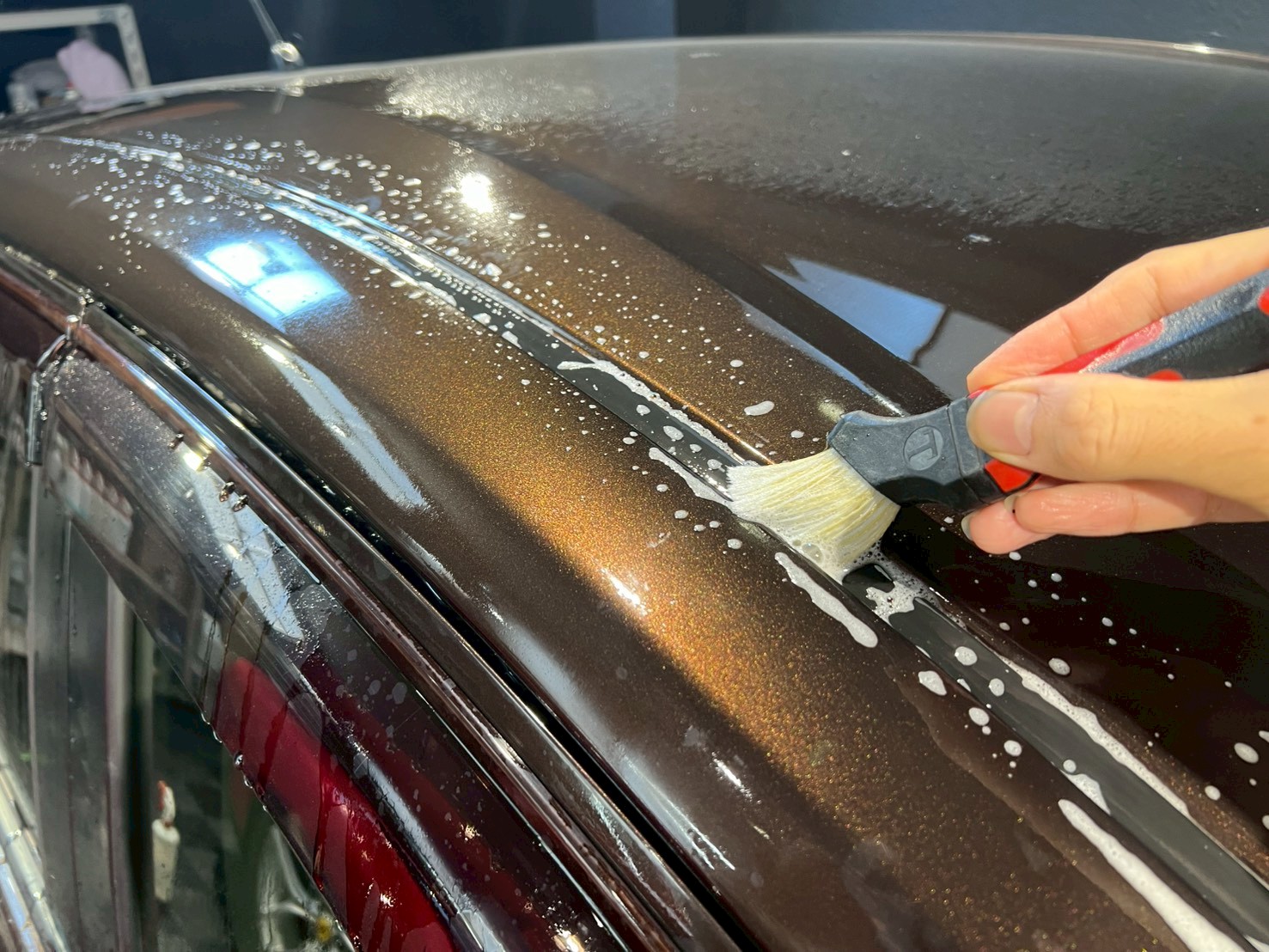 脱脂、仕上げ作業(ドアの内側や隙間の磨き粉の除去、窓清掃、ホイール仕上げ、室内清掃)