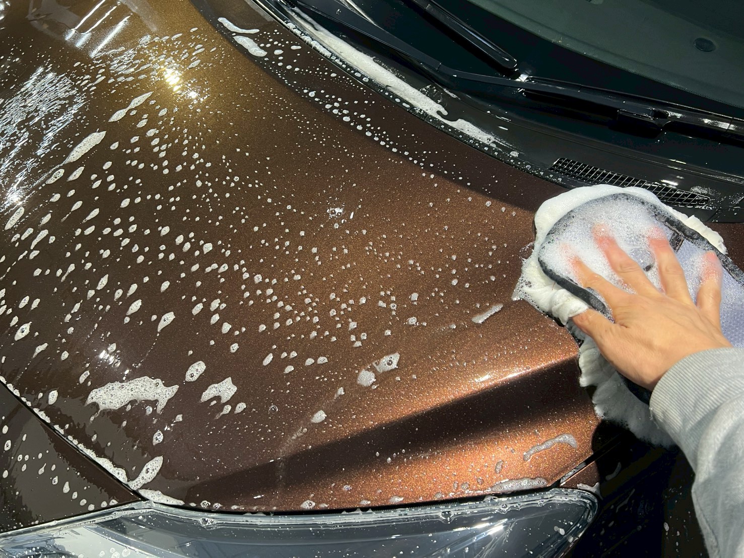 1液性ですが、ガラスコートにフッ素樹脂をプラスすることにより、耐久性の向上、すべり性、艶感といった、良いとこ取りしたコーティングになります。