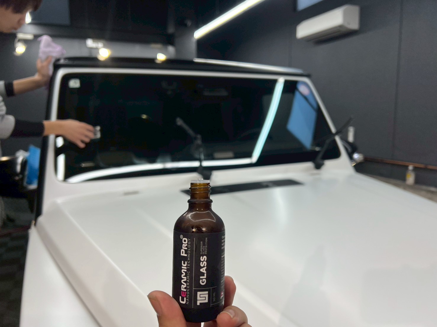 ウィンドウコーティングの下処理には、美観復活と同時に、コーティングの定着(耐久性)を良くする目的があります。