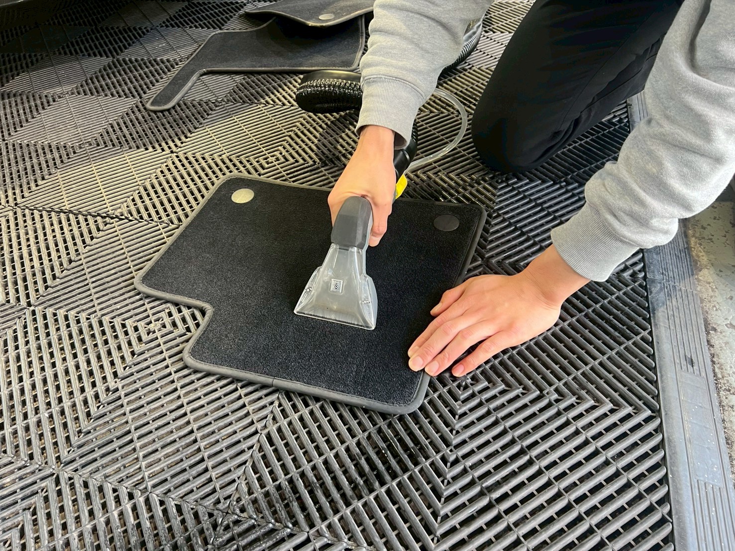 まずは、リンサークリーナーでフロアマットをクリーニングしていきます♪