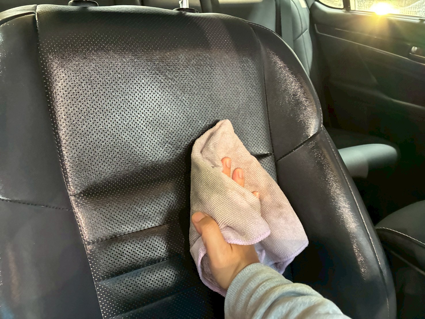 仕上げ作業(ドアの内側や隙間の磨き粉の除去、窓清掃、ホイール仕上げ)と、インテリアクリーニングを行います。