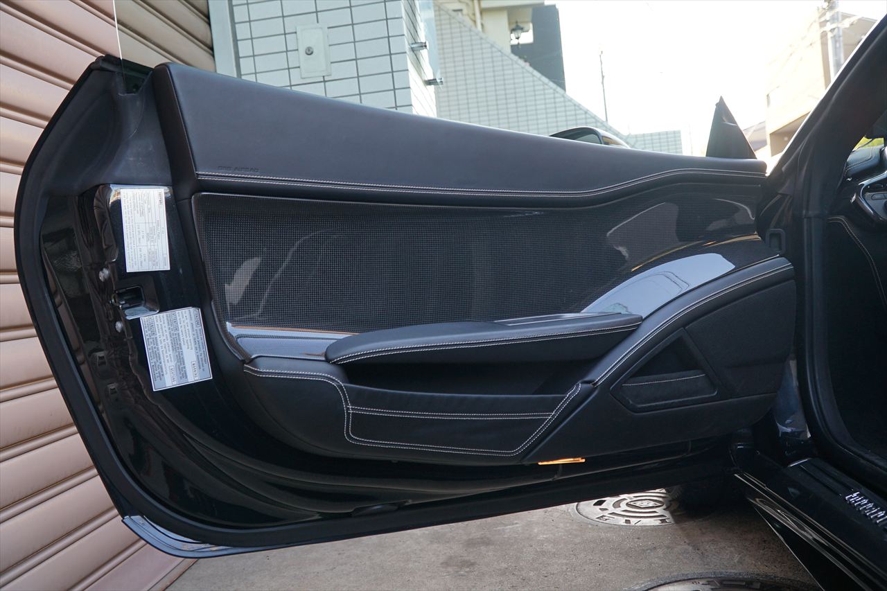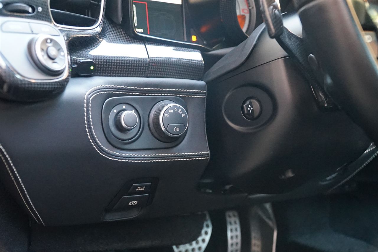 オプションでカーボンファイバーレーシングパッケージが装着されているのでLED付カーボンファイバーステアリングは勿論、ダッシュボードやドアパネルもカーボンになります。