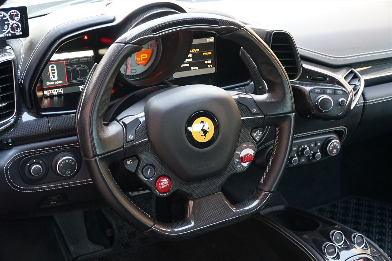 フェラーリ 458イタリア 入庫いたしました。4.5L/V8自然吸気エンジンが生み出す570馬力は0-100kmを僅か3.4秒で駆け抜け、一気に吹け上がる鋭いレスポンスはまさに純血スーパーカーそのもの。後継488でターボ化が進む中、458は“最後のV8 NAモデル”として高い評価と希少性を獲得しております。NAならではの乾いたエキゾーストとダイレクトな加速フィールは唯一無二。市場でも価値の落ちにくいモデルです。本車両にはパワークラフト製可変マフラーを装着し、官能的なエキゾーストノートをさらに強調。カスタムはそれだけではございません。前後異形の20/21インチの鍛造アルミホイール、カーボンエアロ、内外装カーボンパーツなど見どころ満載。装備も存在感も飛び抜けた一台に仕上がっております。フェラーリ458イタリアをお探しの方は、ぜひお早めにご検討ください。