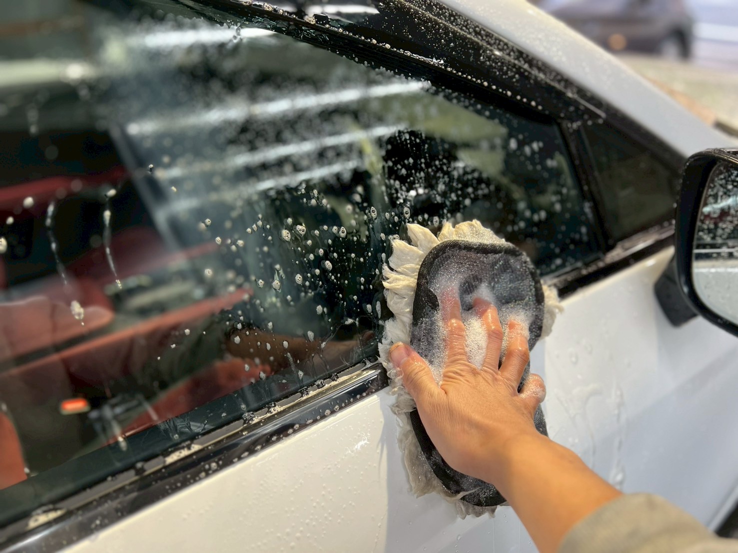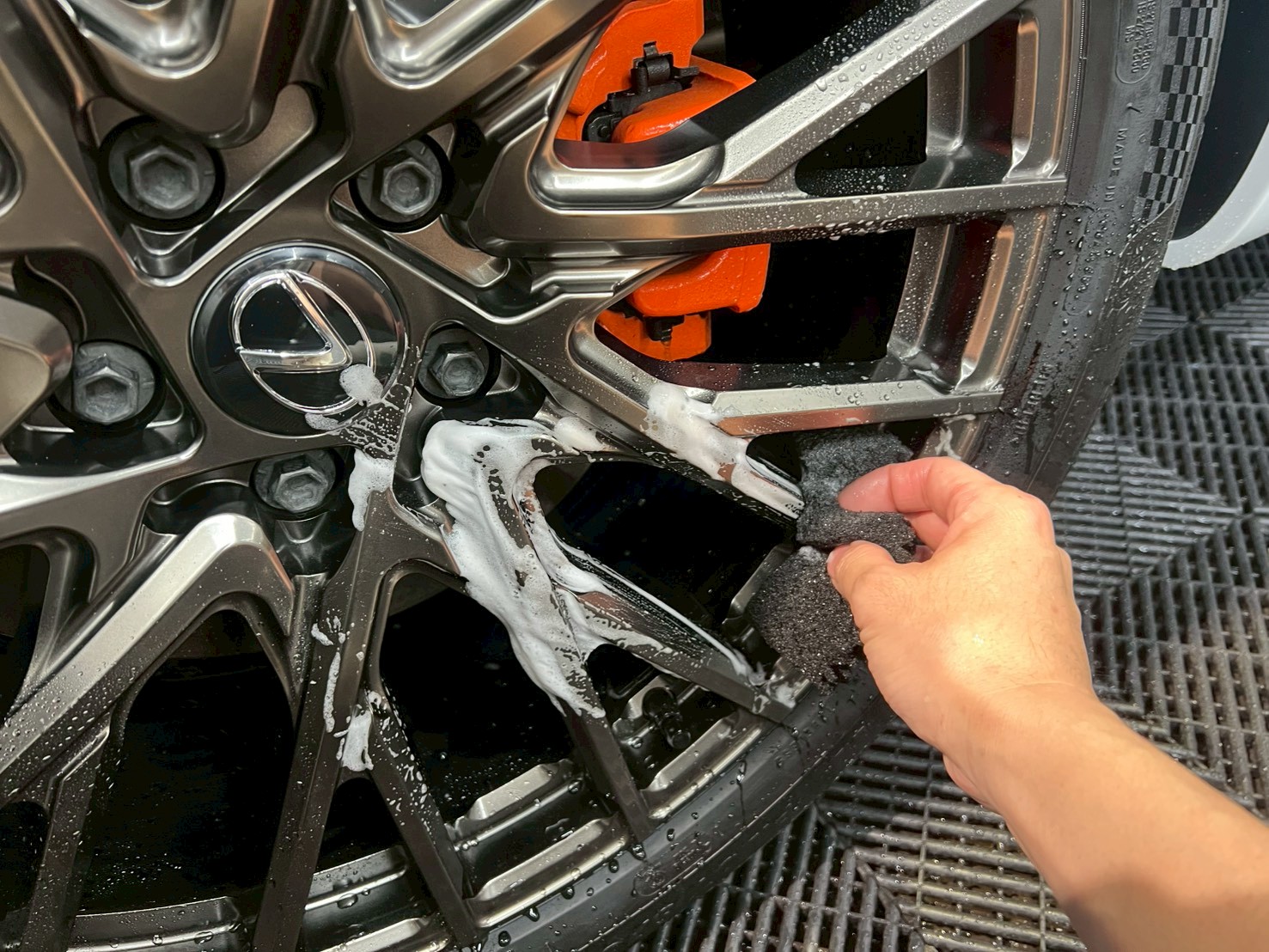 脱脂、仕上げ作業(ドアの内側や隙間の磨き粉の除去、窓清掃、ホイール仕上げ、室内清掃)