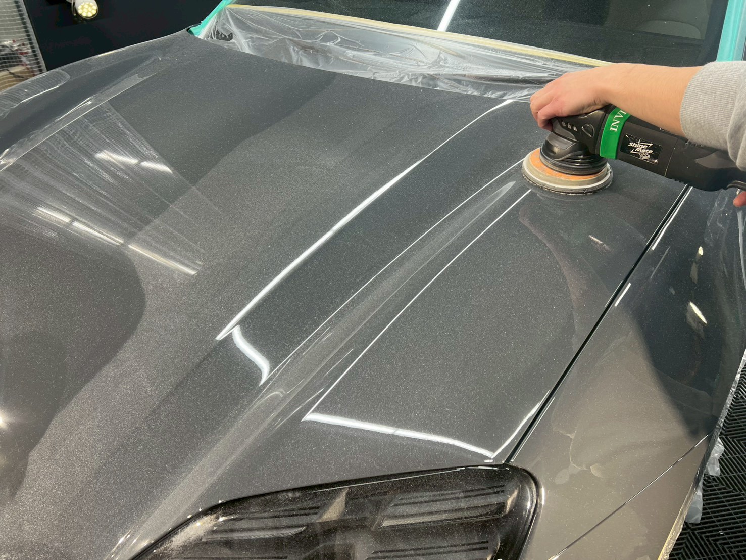 脱脂、仕上げ作業(ドアの内側や隙間の磨き粉の除去、窓清掃、ホイール仕上げ、室内清掃)