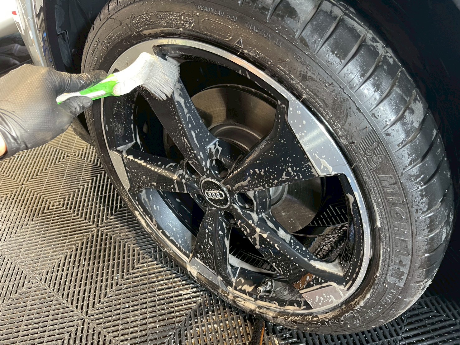 仕上げ作業(ドア内の水滴除去、窓清掃、ホイール仕上げ、室内清掃)