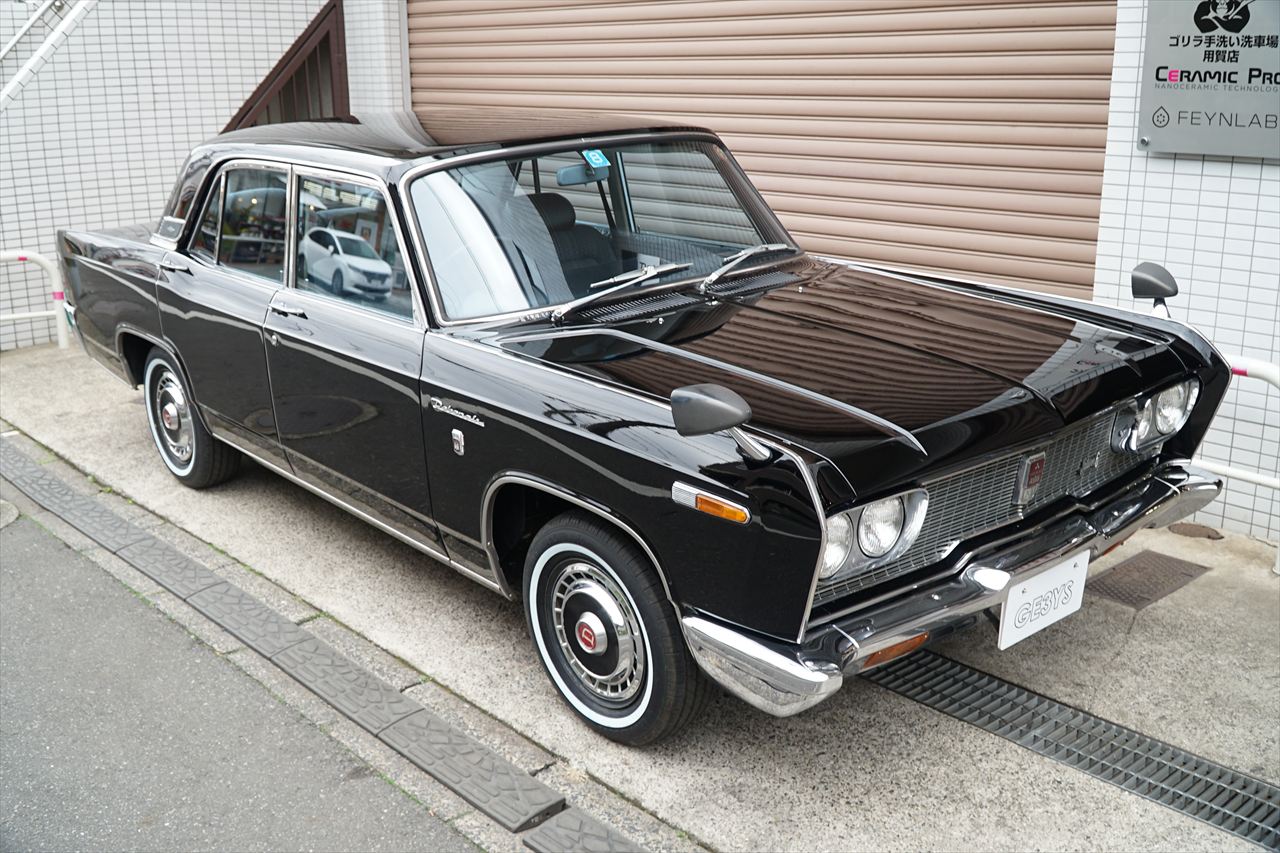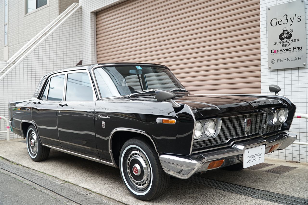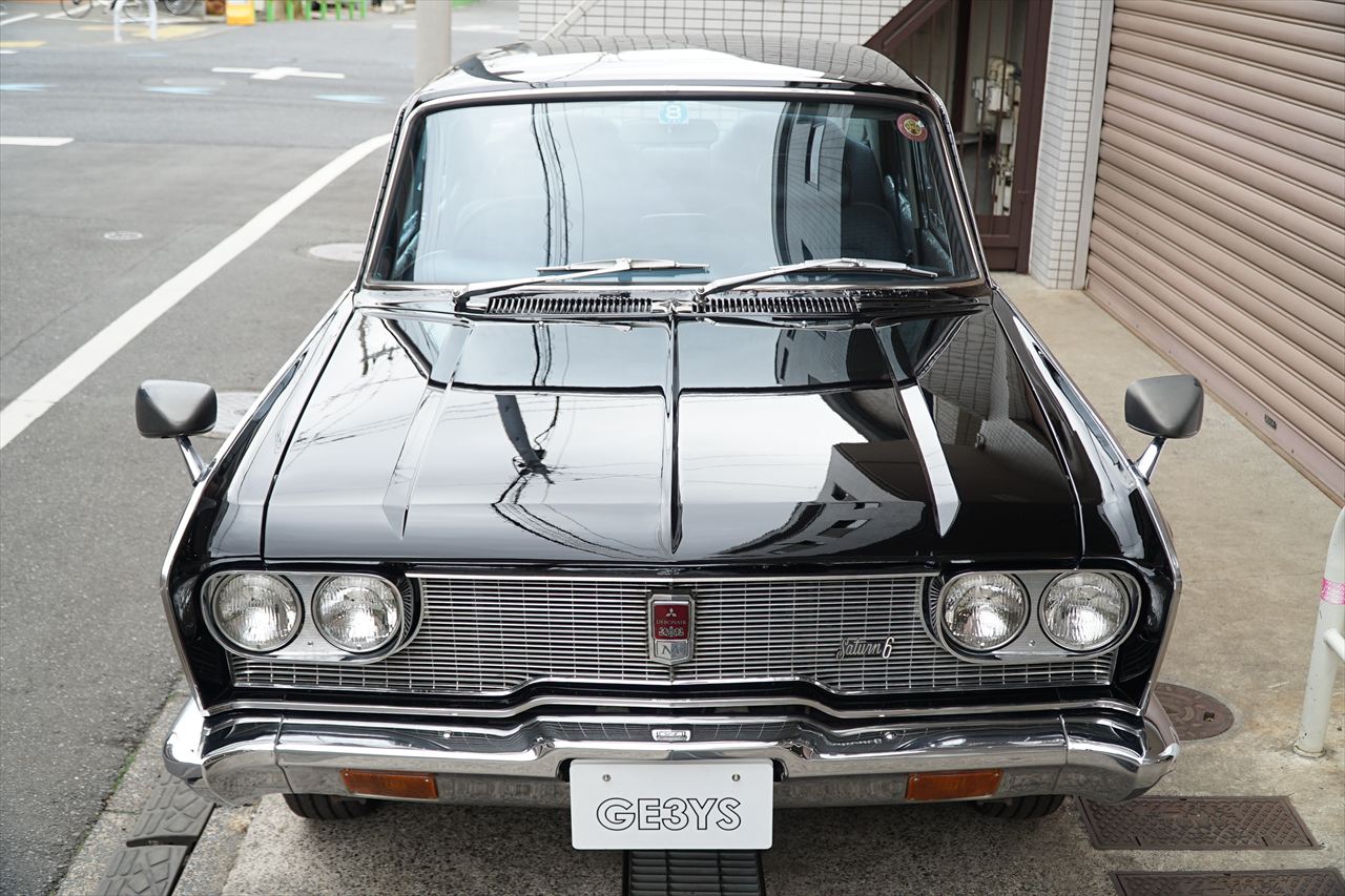 1968年当時、5ナンバーというサイズの制約がある中、アメ車のようなテールのフィン、丸目4灯張り出したメッキバンパーという特徴を見事にまとめた一台です。