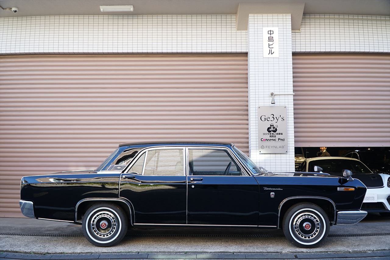 1964年の販売開始から1986年にわたり生産され続けた「三菱 デボネア エグゼクティブ」が入庫しました。フルモデルチェンジまでの22年間、基本設計や大きなデザイン変更がされなかったことからモデルライフ末期には「走るシーラカンス」という愛称で親しまれた一台です。今回入庫のデボネアは1974年式のA31というモデルで4速コラムマニュアルとベンチシート「サターン6」という2.0L直列6気筒エンジンを搭載したモデルの中では後期型となる一台です。このモデル以降は2.6L直列6気筒エンジンになりましたが、マニュアルトランスミッションの設定がなくなりました。オートマチックトランスミッションに比べてトラブルも少ないことからマニュアルをお探しの方も多いのではないでしょうか。エクステリアは元GMのデザイナー H・Sブレッツナーが手がけたアメリカンテイストの強いデザインです。塗装はブラックでリフレッシュされています。シートはグレーのモケットで、インテリアパネルはウッドが装着されておりショーファーカーとしての利用を想定された車だけあり非常に高級感あるデザインです。50年前の車両ながら2オーナーの走行距離8,000kmとのこともあり、年式から考えると非常に良いコンディションを保っております。半世紀前の三菱のショーファーモデル「デボネア」!!気になるお客様は是非お早目にお問合せ下さい。