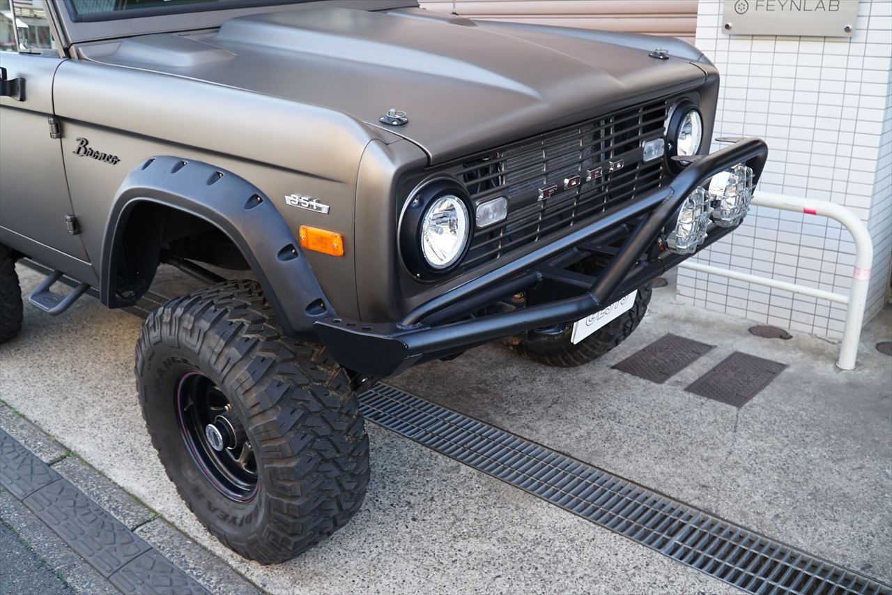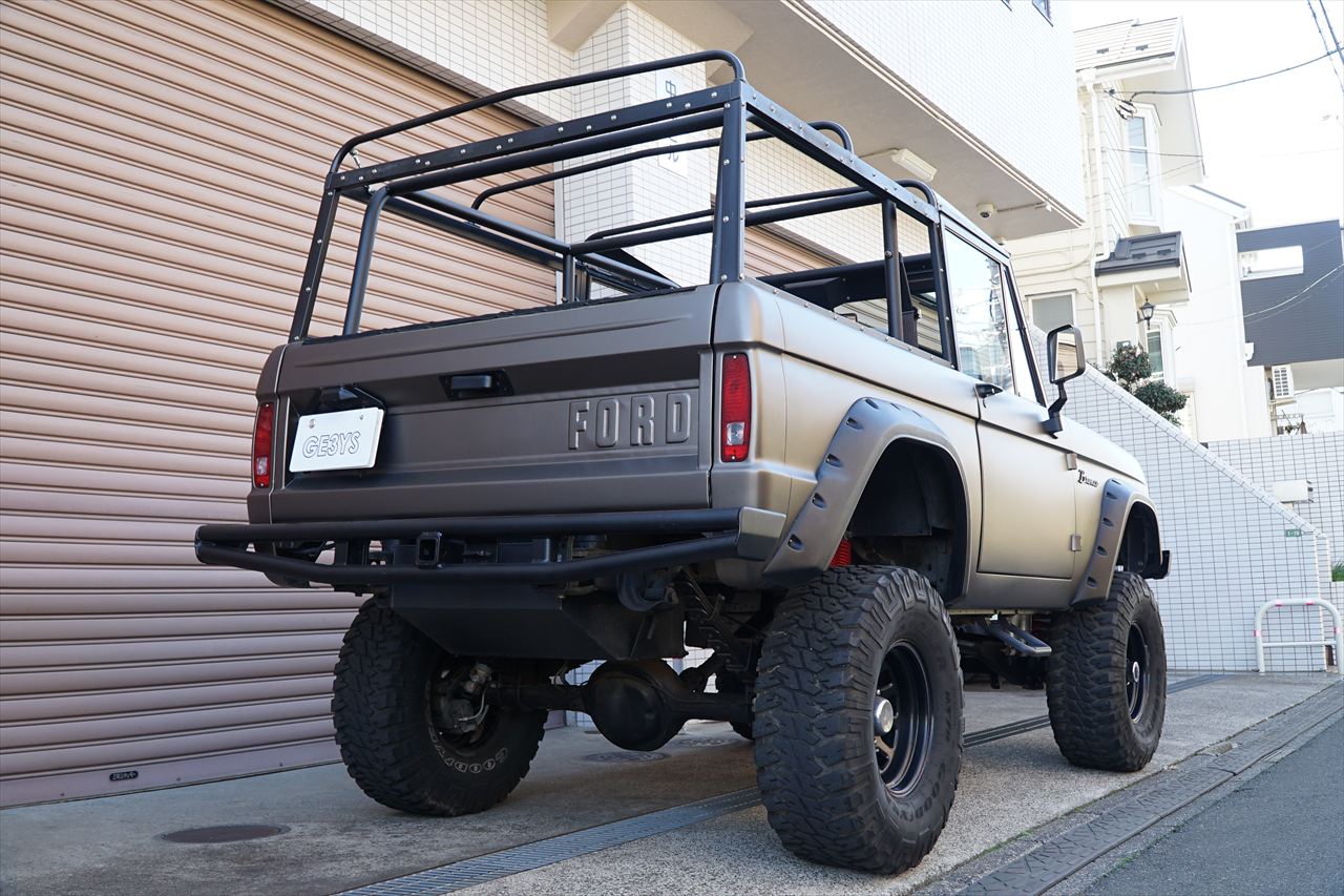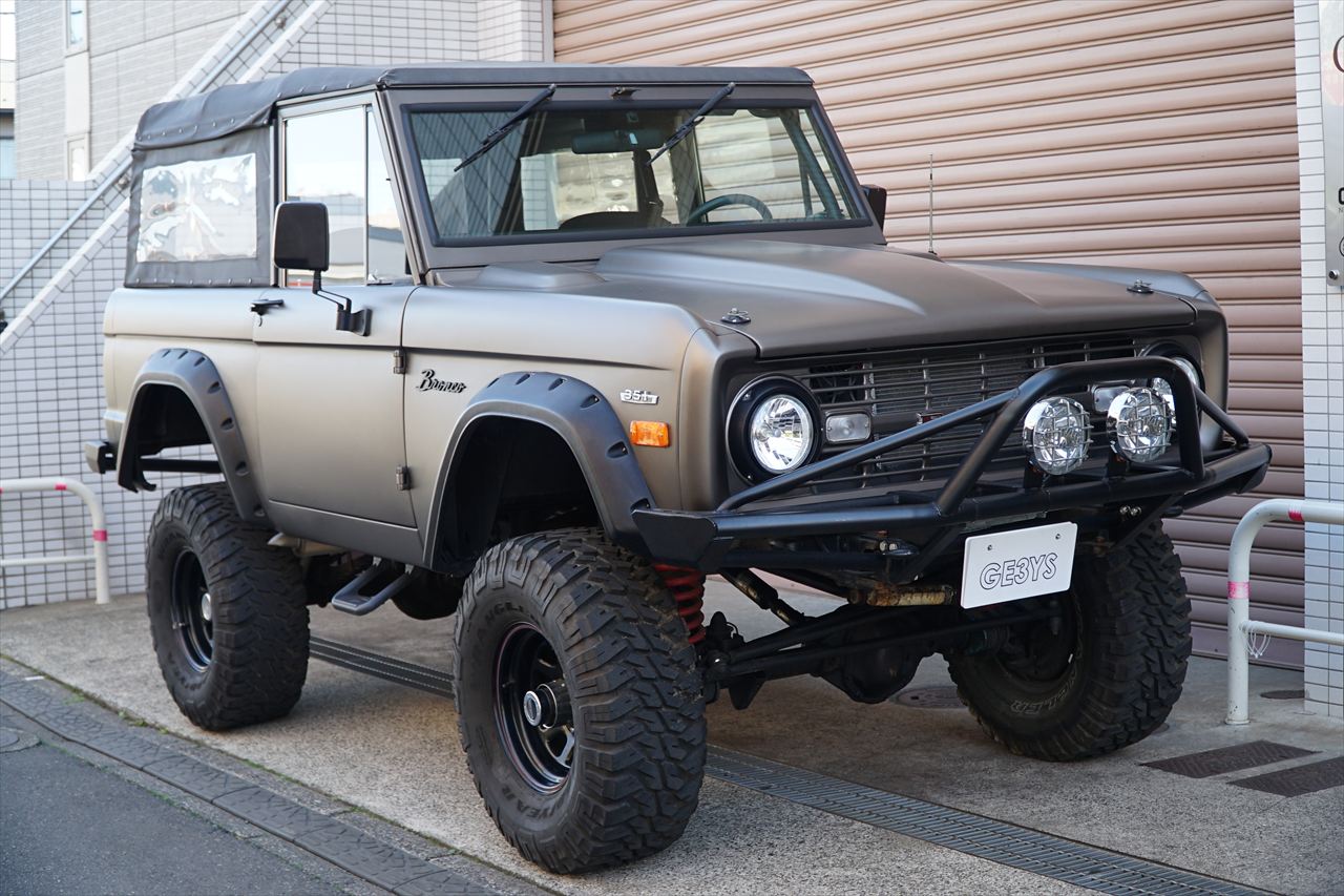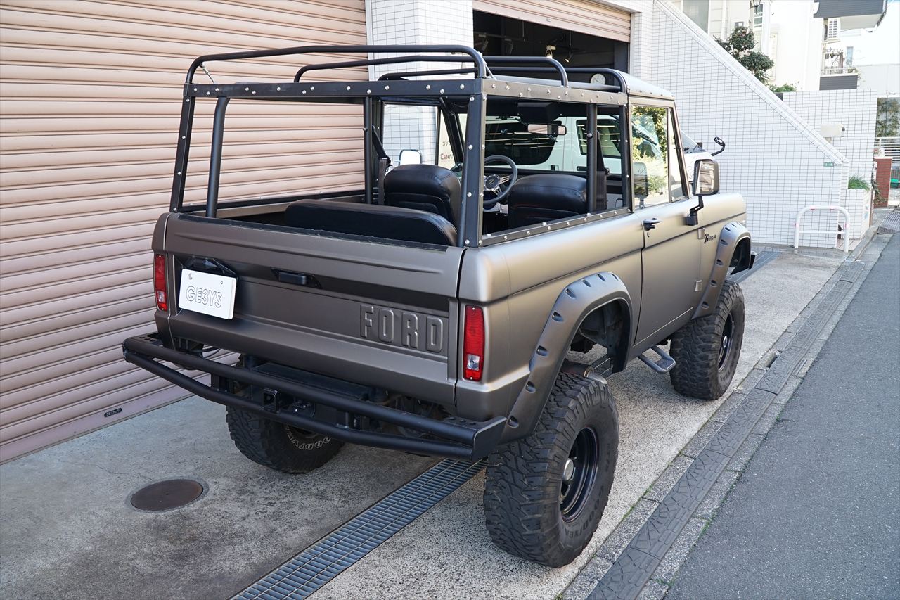 1966年に登場し、「アーリーブロンコ」の愛称で知られる初期型のフォード・ブロンコの入庫です。発売開始から約60年経過しますが愛嬌あるフロントマスクや、小振りなボディながらもしっかりと存在感のあるデザインなど、現代においても魅力を放ち続けているモデルです。今回入庫の車両に搭載されるエンジンはV8・5.8L 351ウィンザーエンジンに載せ替えられております。組み合わされるトランスミッションは3速オートマに載せ替えられておりますのでトルクフルかつスムーズな走行が可能です。さらにマッドブロンズのエクステリアカラーに全塗装されたボディはリフトアップされており、ワンオフで作成された前後のパイプバンパーとの組み合わせも非常にワイルドな印象になっております。また、約60年前の車両になりますが補修やメンテナンスパーツの供給体制も充実しているので安心して長くお楽しみいただける一台です。気になるお客様はお早めにお問い合わせください。