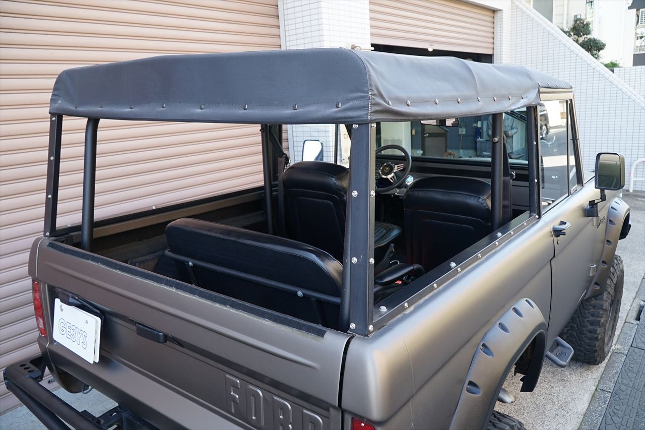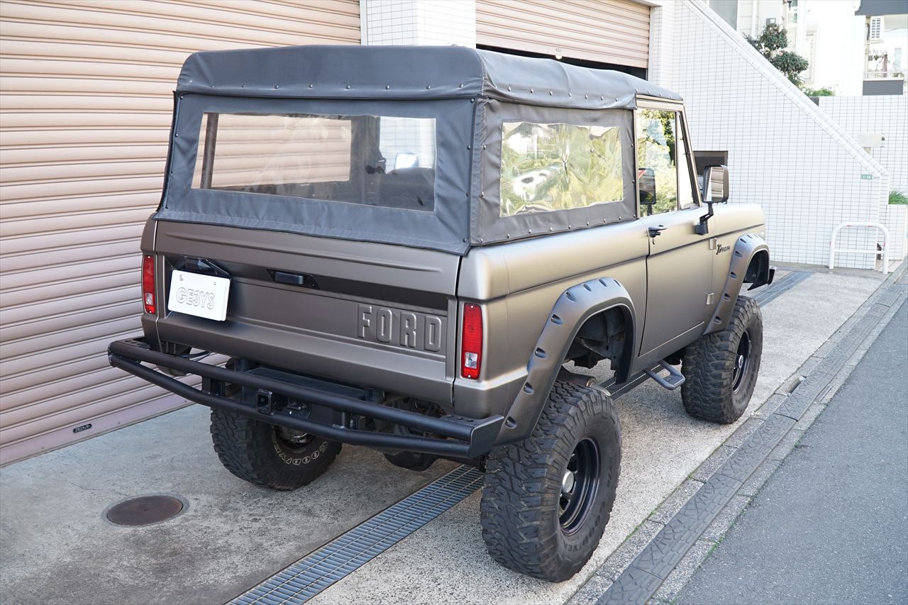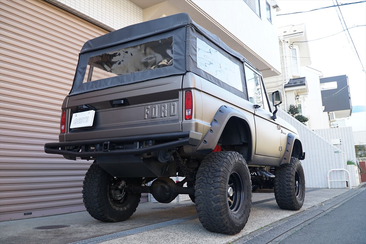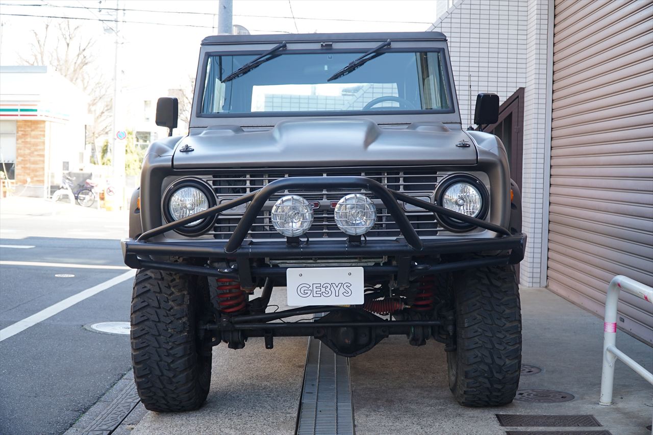 1966年に登場し、「アーリーブロンコ」の愛称で知られる初期型のフォード・ブロンコの入庫です。発売開始から約60年経過しますが愛嬌あるフロントマスクや、小振りなボディながらもしっかりと存在感のあるデザインなど、現代においても魅力を放ち続けているモデルです。今回入庫の車両に搭載されるエンジンはV8・5.8L 351ウィンザーエンジンに載せ替えられております。組み合わされるトランスミッションは3速オートマに載せ替えられておりますのでトルクフルかつスムーズな走行が可能です。さらにマッドブロンズのエクステリアカラーに全塗装されたボディはリフトアップされており、ワンオフで作成された前後のパイプバンパーとの組み合わせも非常にワイルドな印象になっております。また、約60年前の車両になりますが補修やメンテナンスパーツの供給体制も充実しているので安心して長くお楽しみいただける一台です。気になるお客様はお早めにお問い合わせください。
