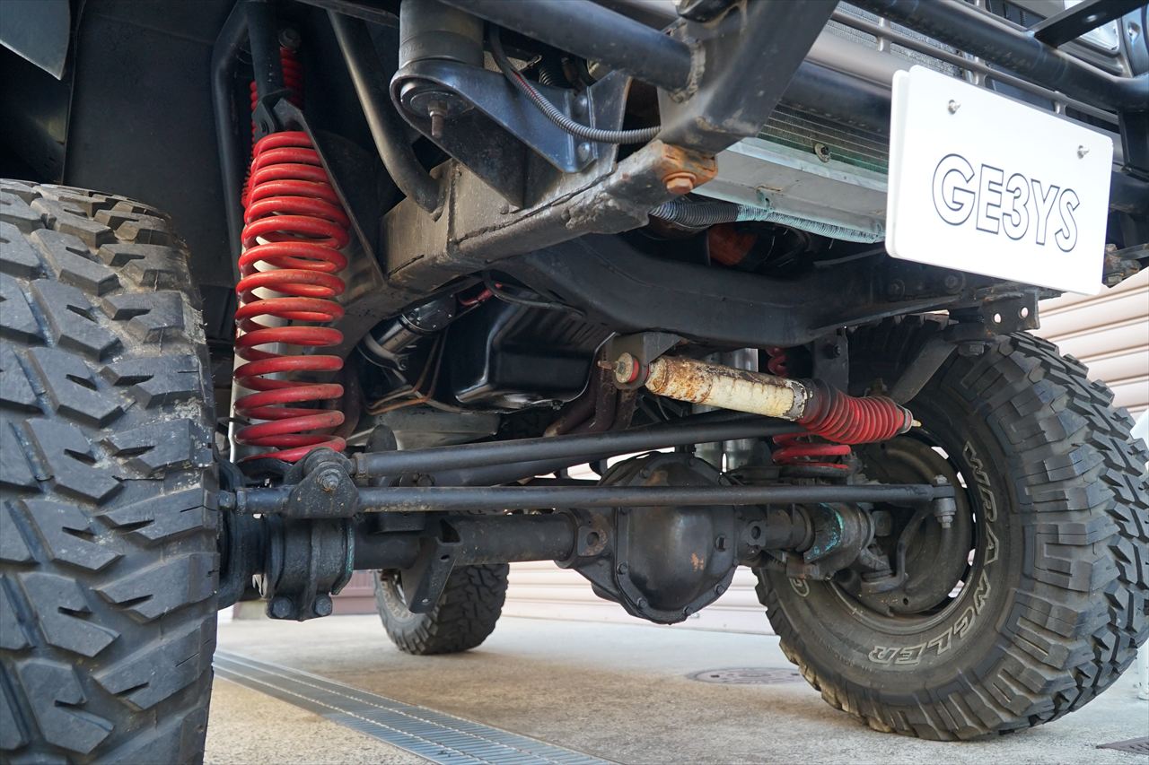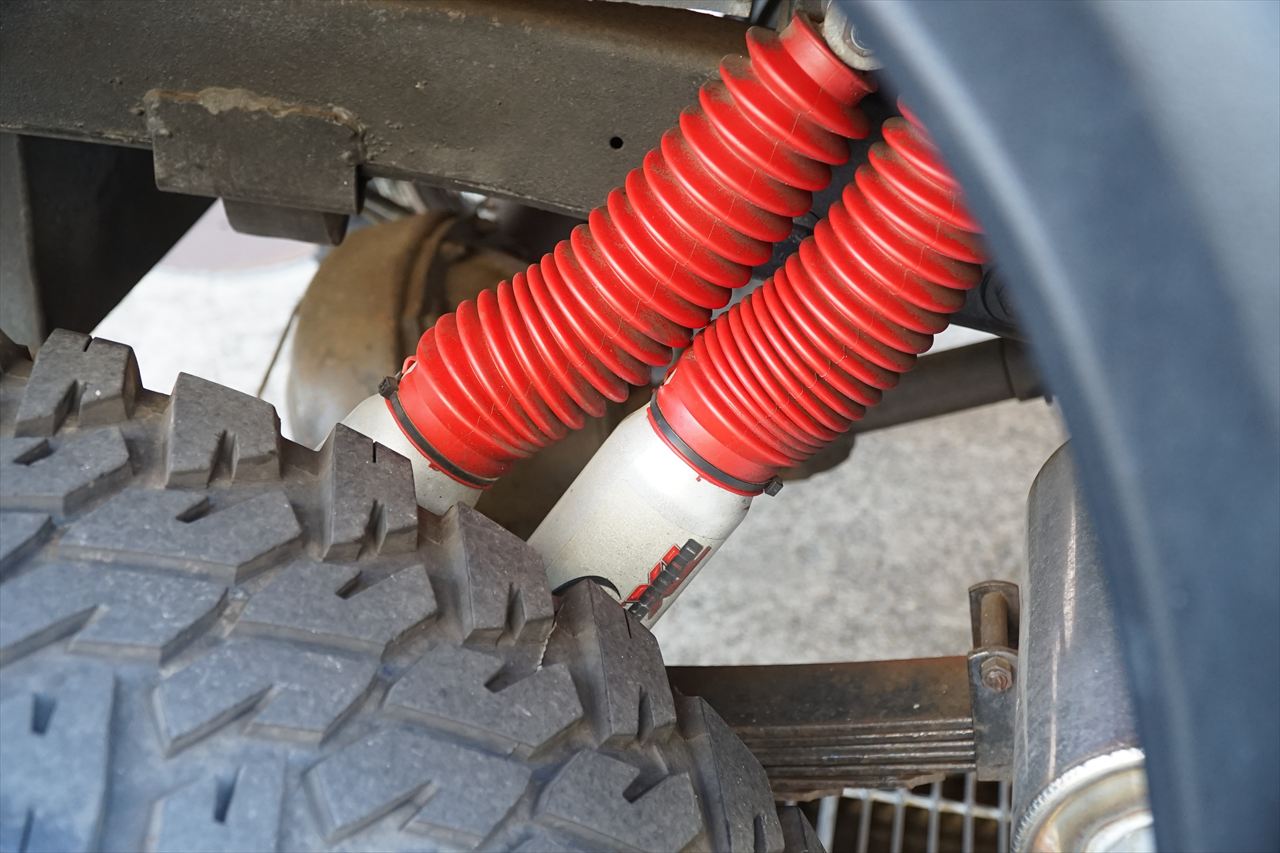 リフトアップはボディリフトと足回り、タイヤでカスタムされています。
