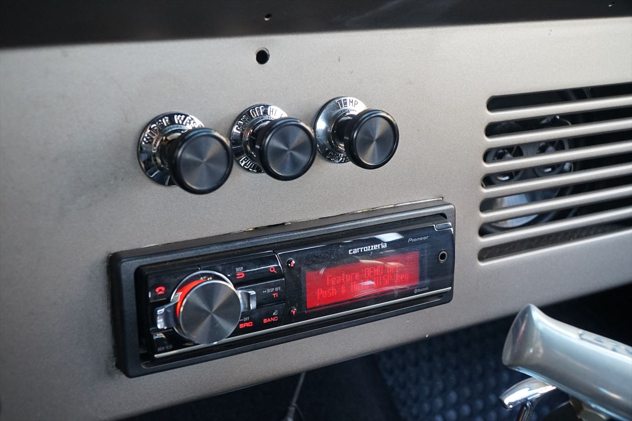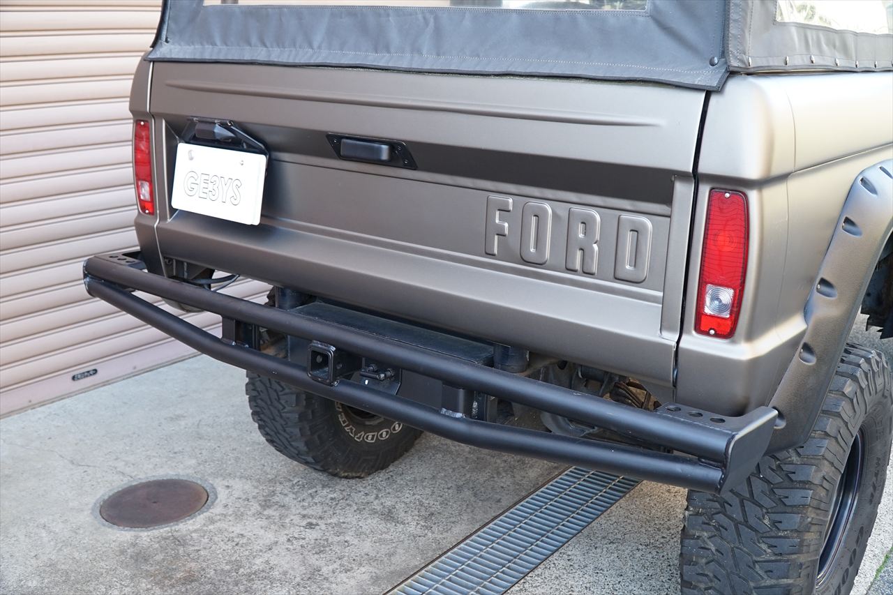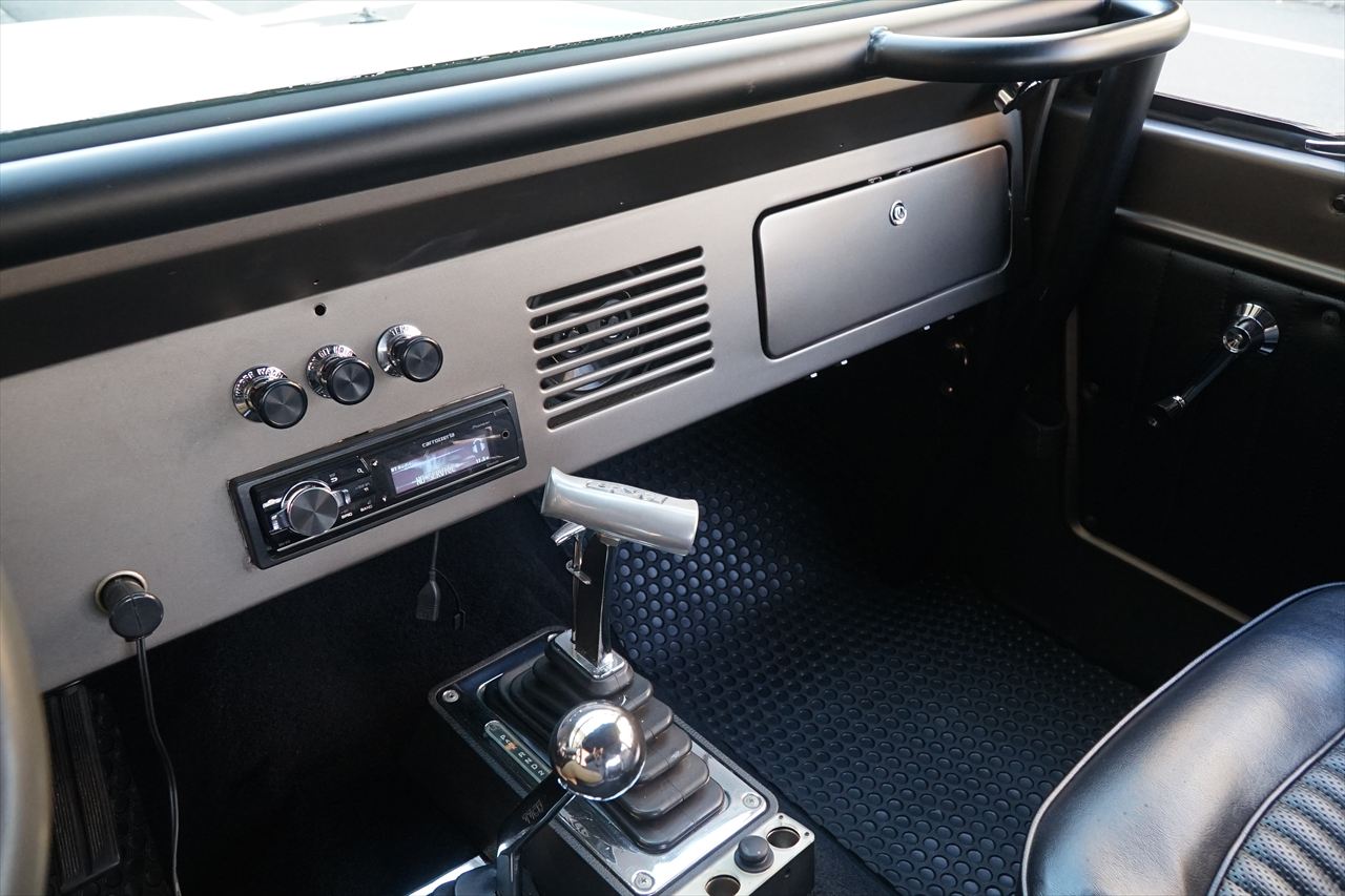 クラシカルな見た目を活かしつつ前後に装着されるワンオフのパイプバンパーがワイルドな印象の一台です。