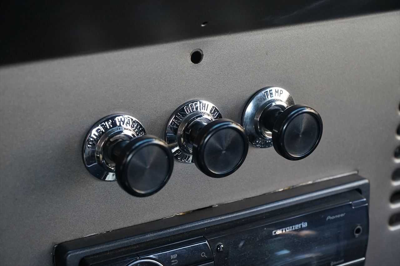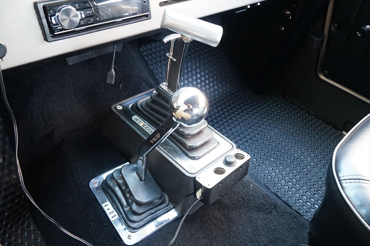 通常であればコラムマニュアルですが、今回の車両は3速ATに換装されていますので、センターにシフトレバーが取り付けられています。
