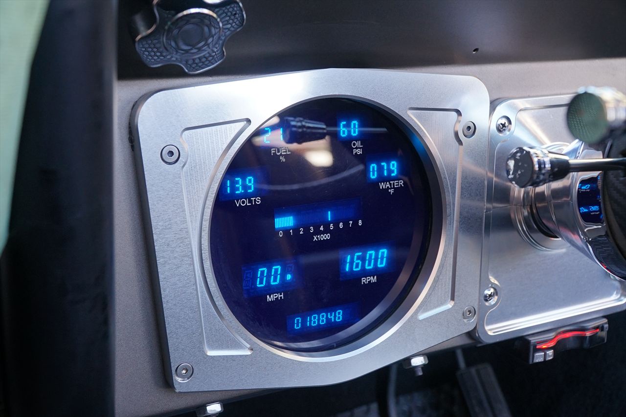 メーターはデジタルのものに交換されており、スピードや回転数は勿論ですが、水温・油圧・電圧も表示されていますのでコンディションの管理も容易です。