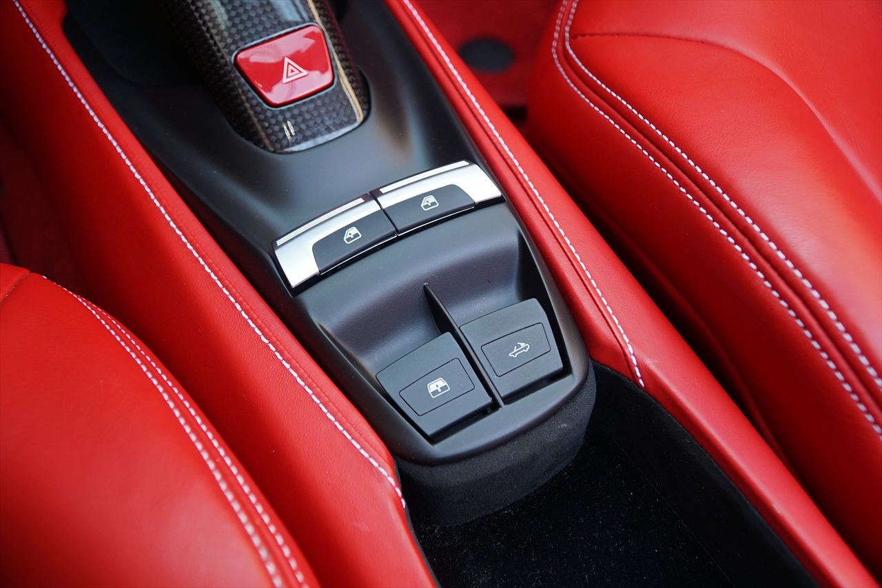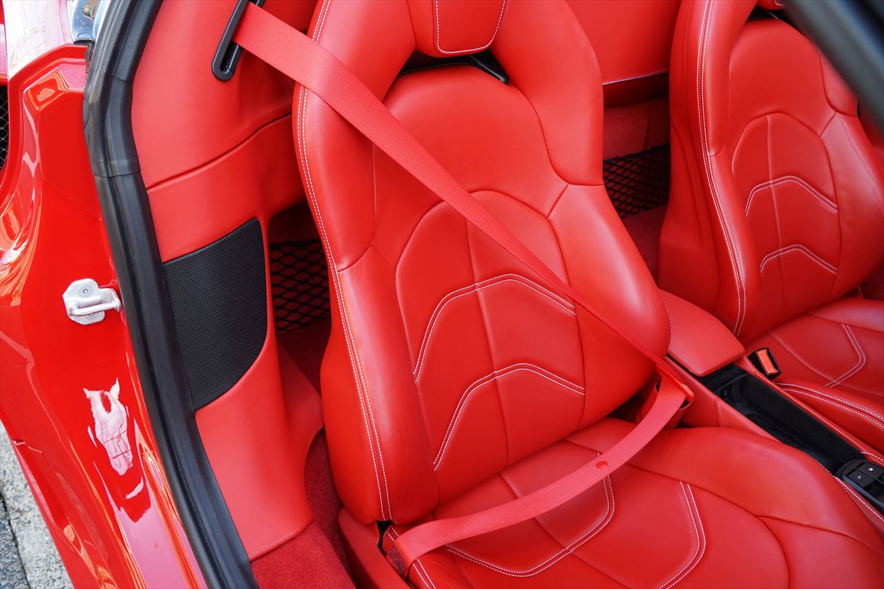インテリアは、ロッソコルサに合わせたロッソレザーとなっております。多数のカーボンパーツとホワイトステッチが良いアクセントとなっております。