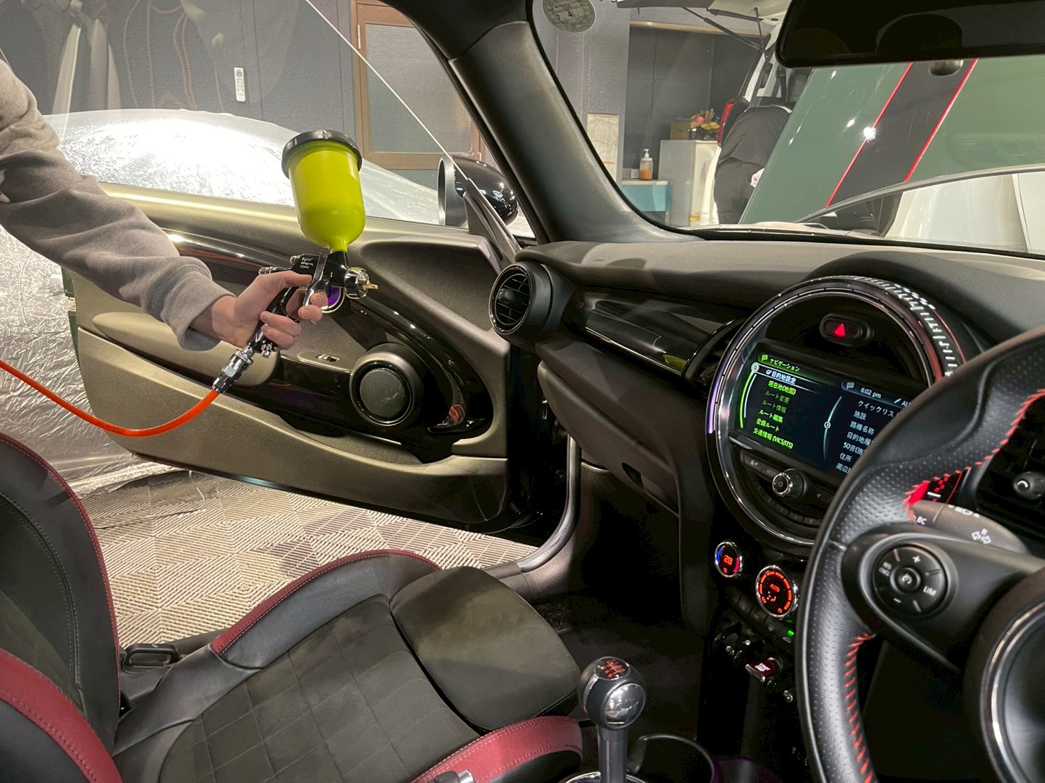 今回のミニ JCWは、車内の臭いが気になるということで、ナノゾーンコートモビリティを施工させていただきました(^^)/