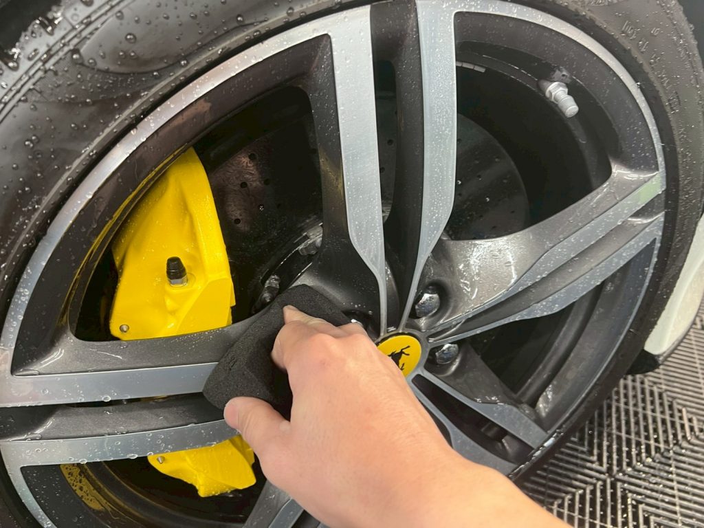 仕上げ作業(ドア内の水滴除去、窓清掃、ホイール仕上げ、室内清掃)