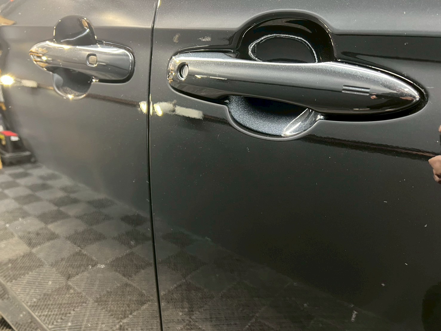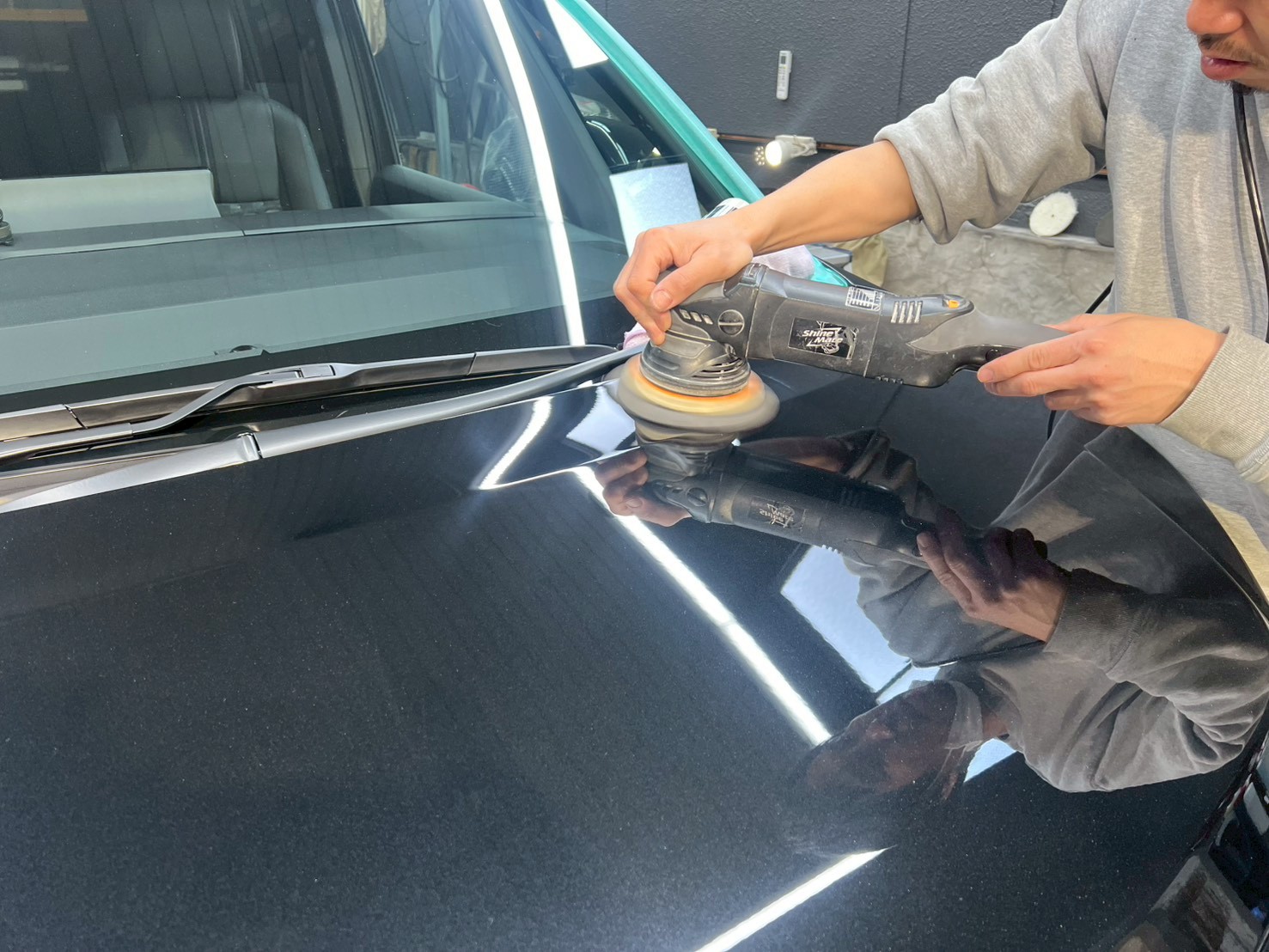 脱脂、仕上げ作業(ドアの内側や隙間の磨き粉の除去、窓清掃、ホイール仕上げ、室内清掃)