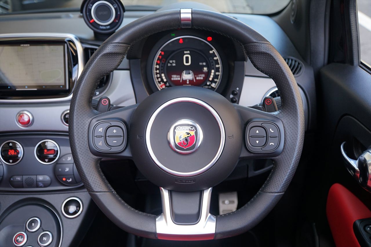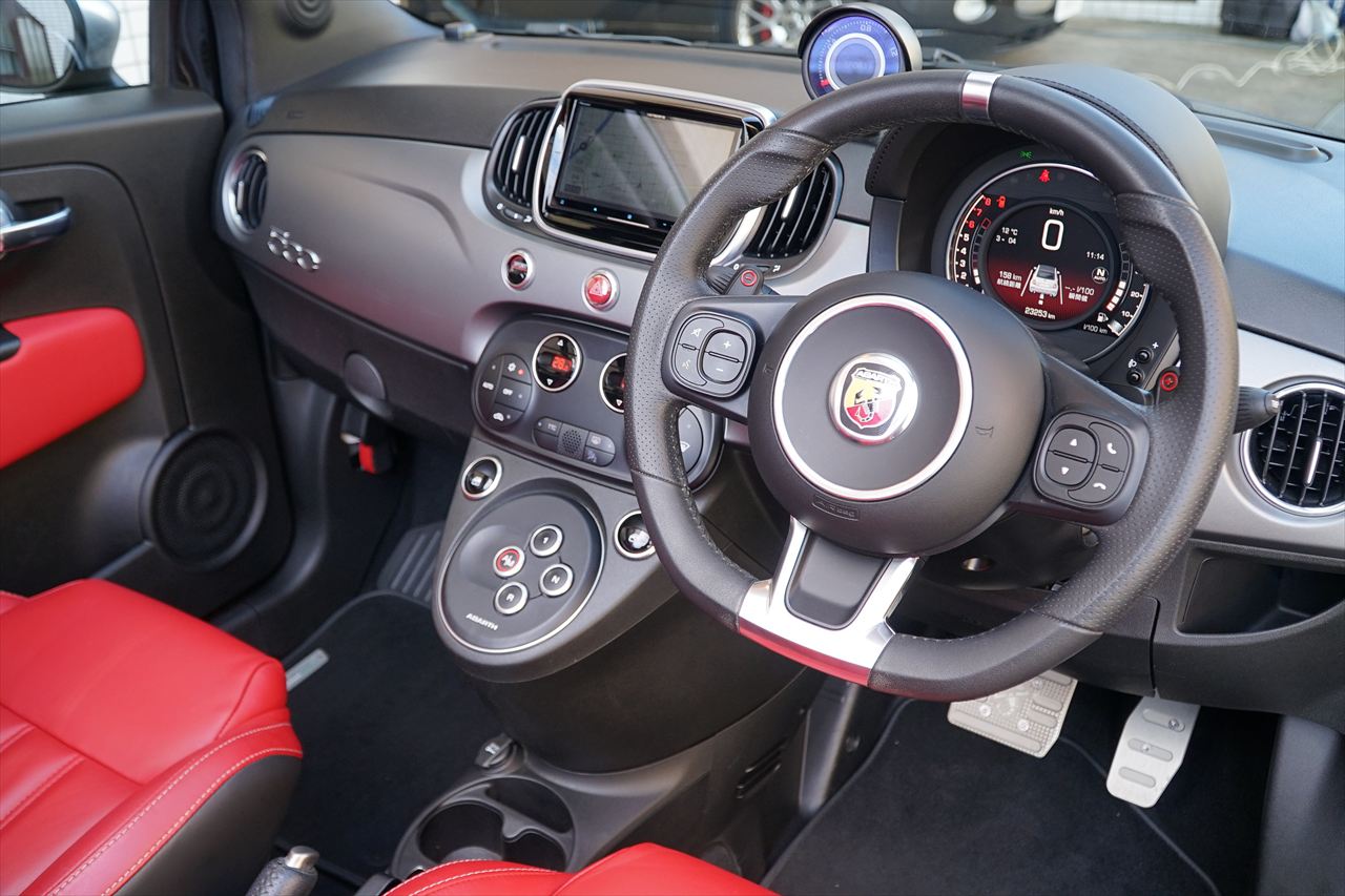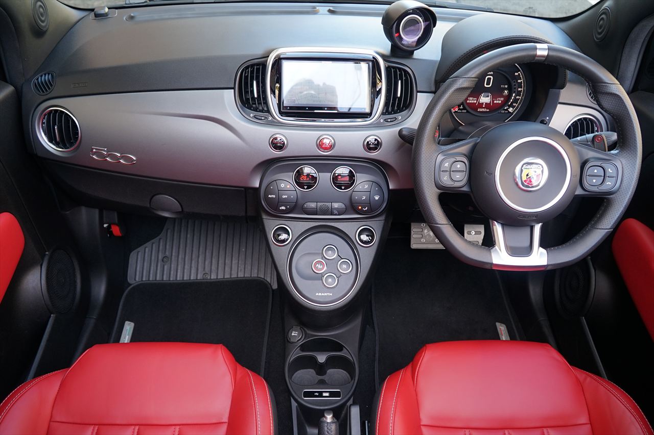 アバルトが誇るハイスペックモデル、プレミアムコンパクトスポーツとしての位置付けを継承する595Cツーリズモ。電動開閉式ソフトトップを備え、日常使いからワインディングまで幅広く楽しめるカブリオレモデルで御座います。直列4気筒インタークーラー付ターボエンジンは最高出力165馬力を発揮。軽量コンパクトなボディとの組み合わせにより、鋭いレスポンスと痛快な加速フィールを実現致します。全長約3.7m、全幅約1.6mの扱いやすいサイズながら、アバルトらしい刺激的な走りを存分に味わえる仕上がりで御座います。そして特筆すべきは、精悍さと深みを併せ持つブラックメタリックのボディカラー。光の当たり方によって表情を変える艶やかなブラックが、595Cのコンパクトなボディラインをより一層引き締め、上質かつ力強い存在感を演出致します。インテリアにはレッドレザーシートを採用し、ブラックメタリックとのコントラストが際立つスポーティかつ華やかな組み合わせとなっております。オープンエアの高揚感とツーリズモならではの快適性、そしてブラックメタリックが放つ圧倒的な存在感を兼ね備えた完成度の高い一台。是非この機会に、個性と品格を併せ持つ595Cツーリズモをご検討下さいませ。