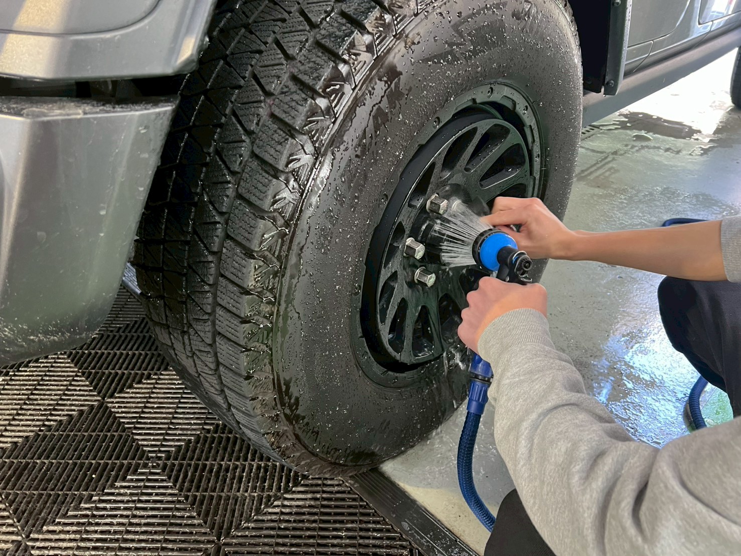 ドアを開けたところ、ホイール(表面のみ)の拭き上げも行います。