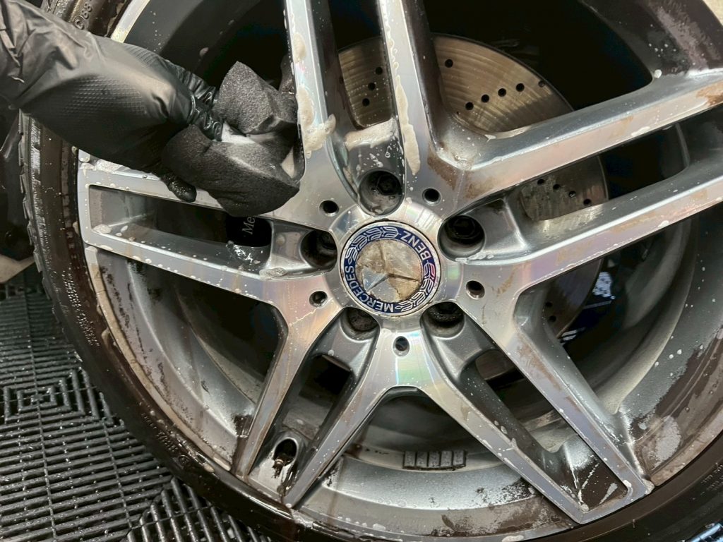脱脂、仕上げ作業(ドアの内側や隙間の磨き粉の除去、窓清掃、ホイール仕上げ、室内清掃)