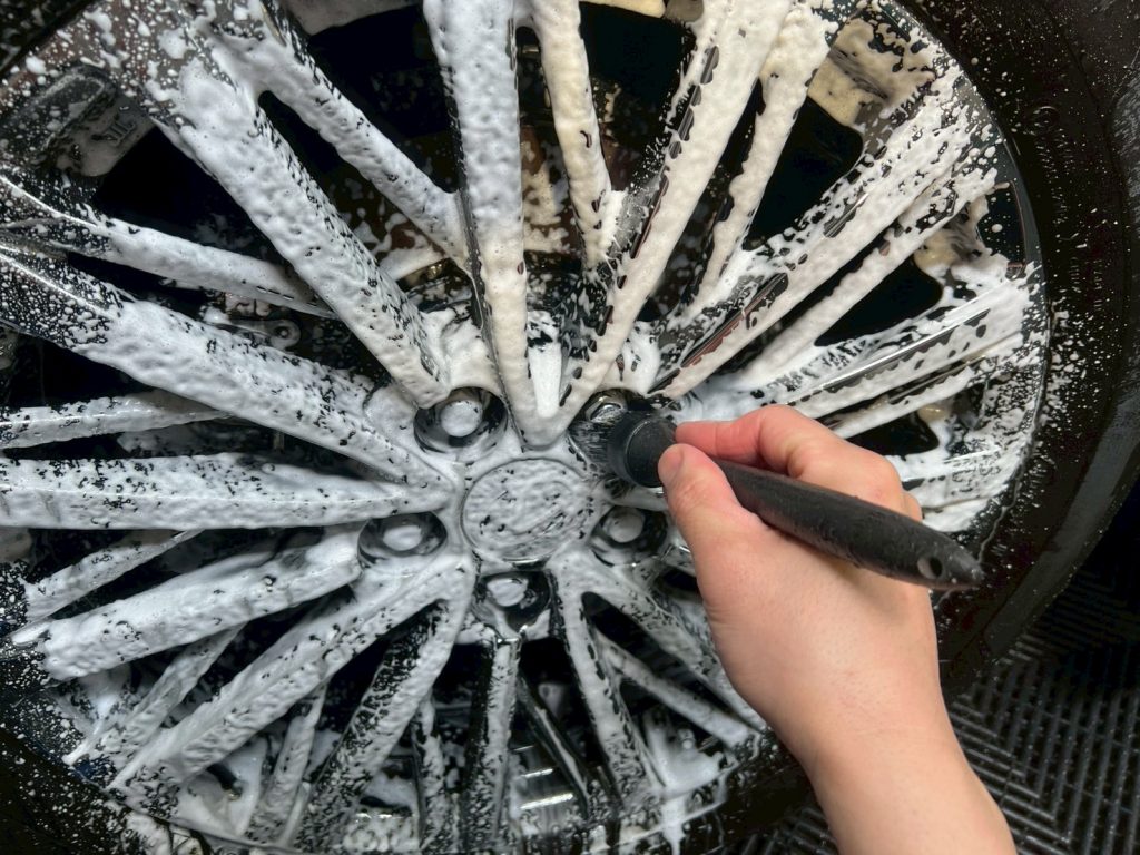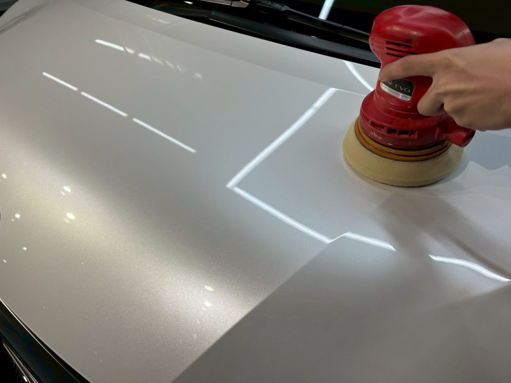脱脂、仕上げ作業(ドアの内側や隙間の磨き粉の除去、窓清掃、ホイール仕上げ、室内清掃)