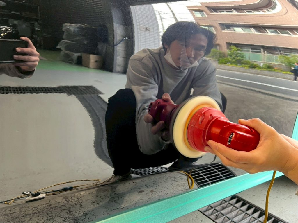 洗車後、施工箇所を確認しながらポリッシャーで磨いて整えていきます♪