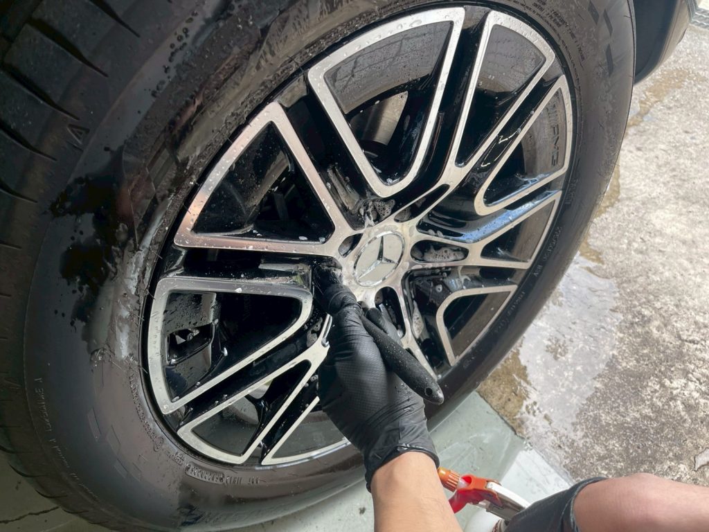 ドアを開けたところ、ホイール(表面のみ)の拭き上げも行います。