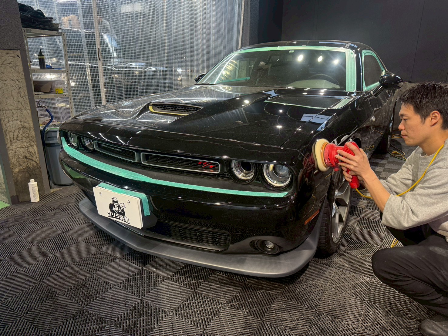 今回は、ダッジ チャレンジャーに艶出し磨きコーティングを施工させていただきました!
