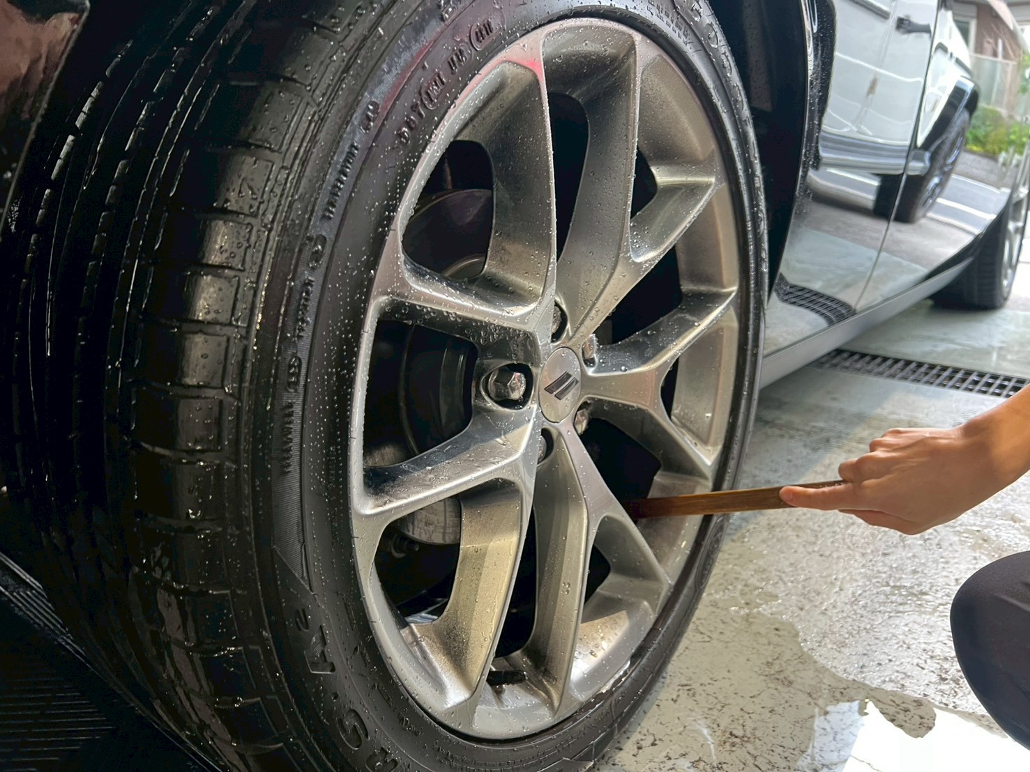 ドアを開けたところ、ホイール(表面のみ)の拭き上げも行います。