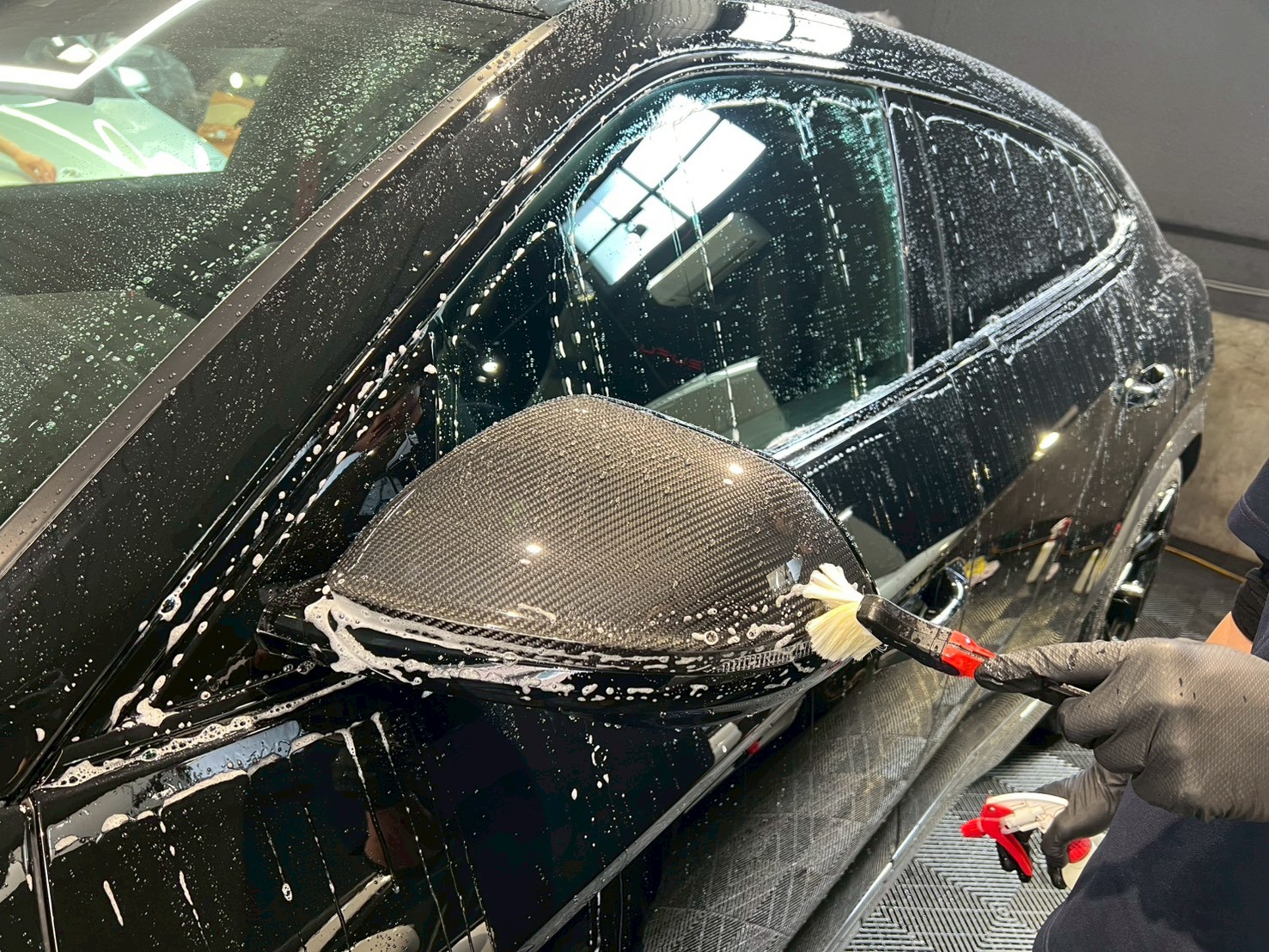 まずは、ボディ洗車、ドアヒンジのクリーニング、ケミカル剤によるクリーニングをしていきます。