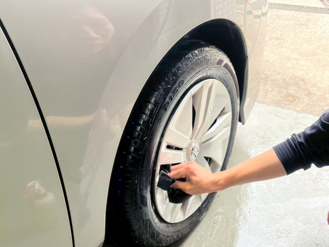ドアを開けたところ、ホイール(表面のみ)の拭き上げも行います。