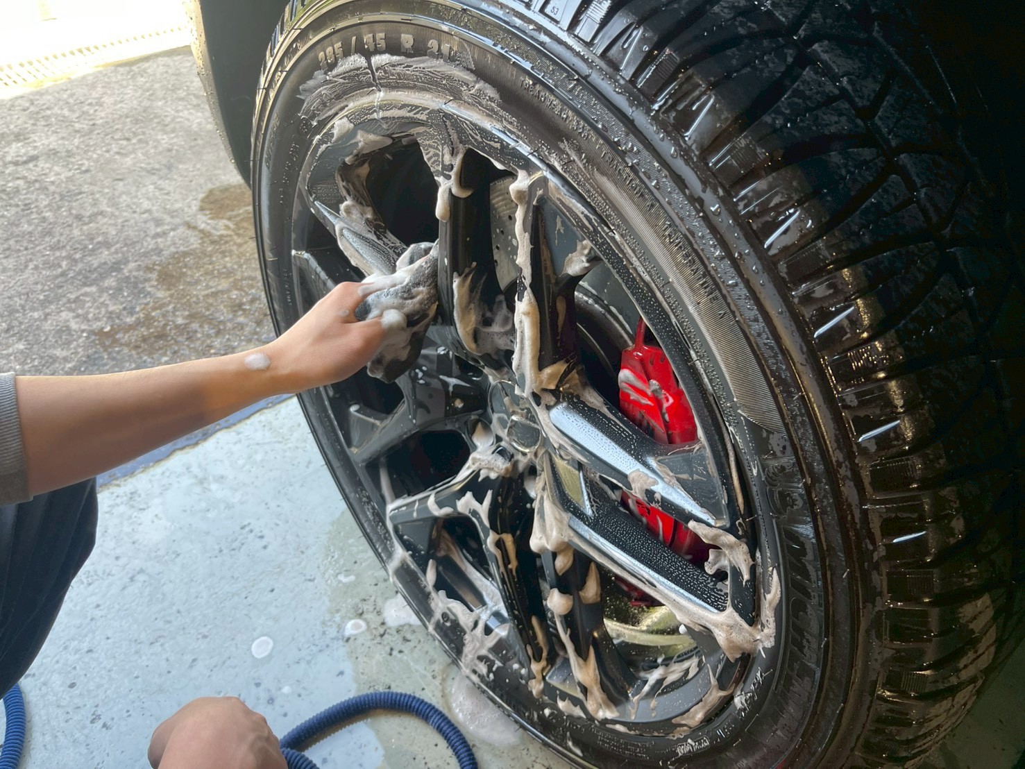 ドアを開けたところ、ホイール(表面のみ)の拭き上げも行います。