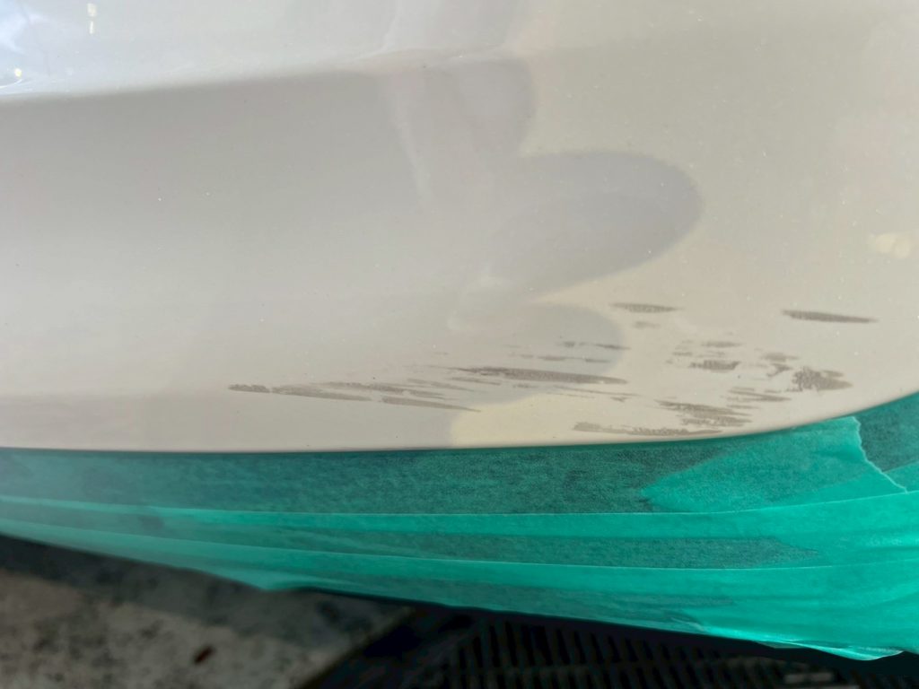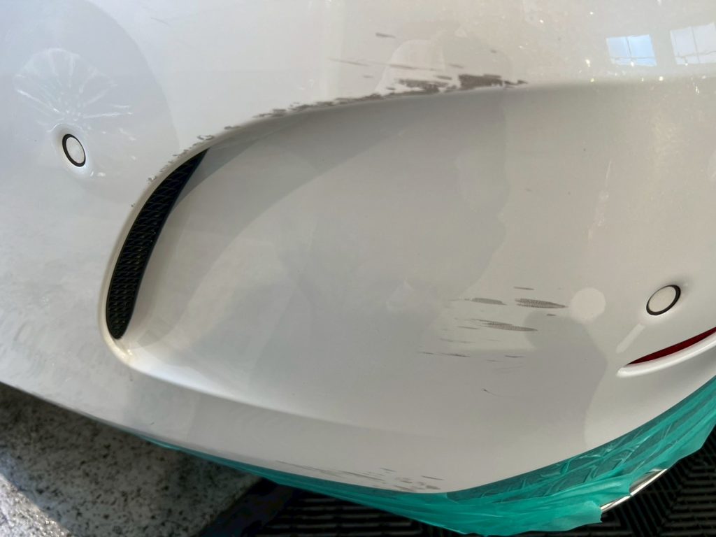 今回のメルセデスベンツ CLS450は、お客様が気にされていたリアバンパーの傷を、磨きで落としていく施工になります!
