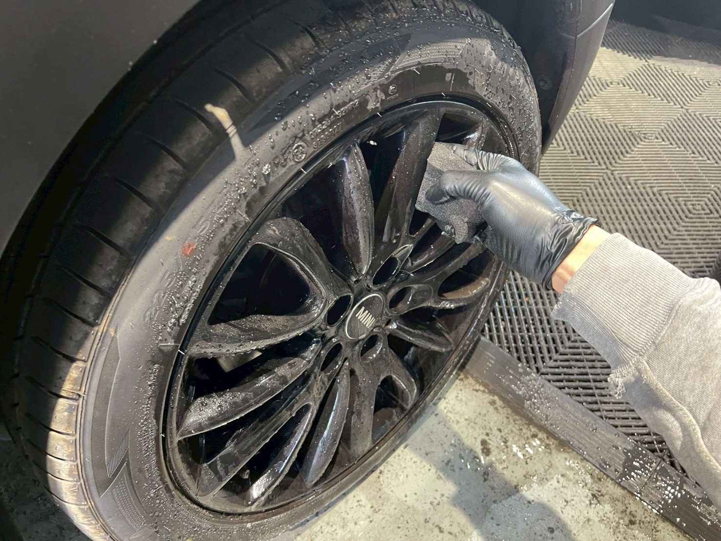 ドアを開けたところ、ホイール(表面のみ)の拭き上げも行います。