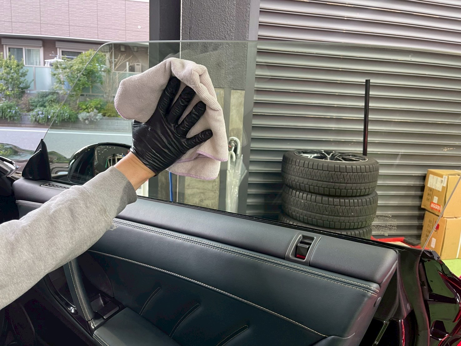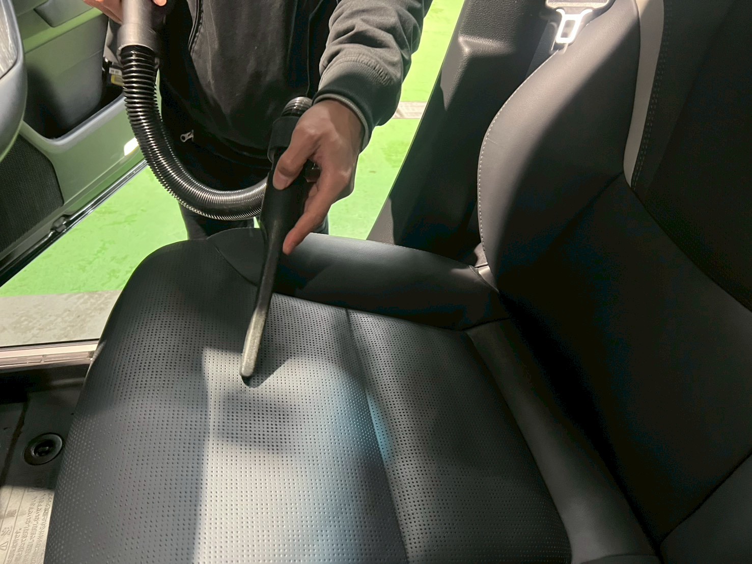 スタンダード洗車にセットになっている運転席、助手席の掃除機掛けとフロントガラスの内窓、ダッシュボードの拭き上げ