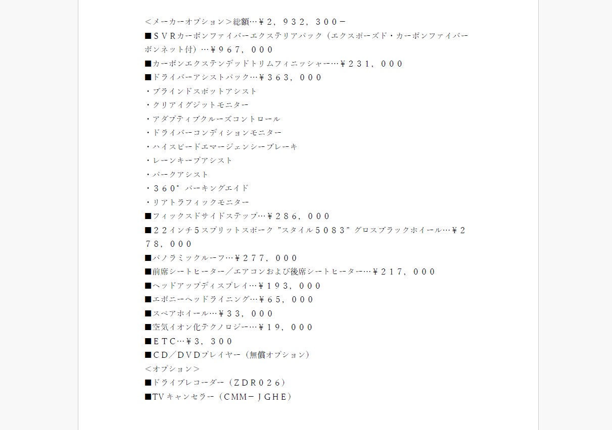 ■SVRカーボンファイバーエクステリアパック(エクスポーズド・カーボンファイバーボンネット付)…¥967,000
