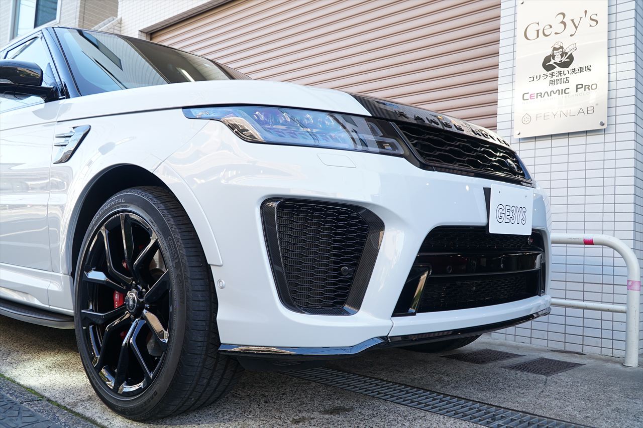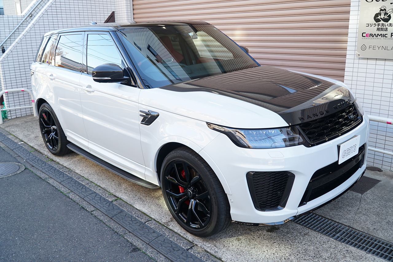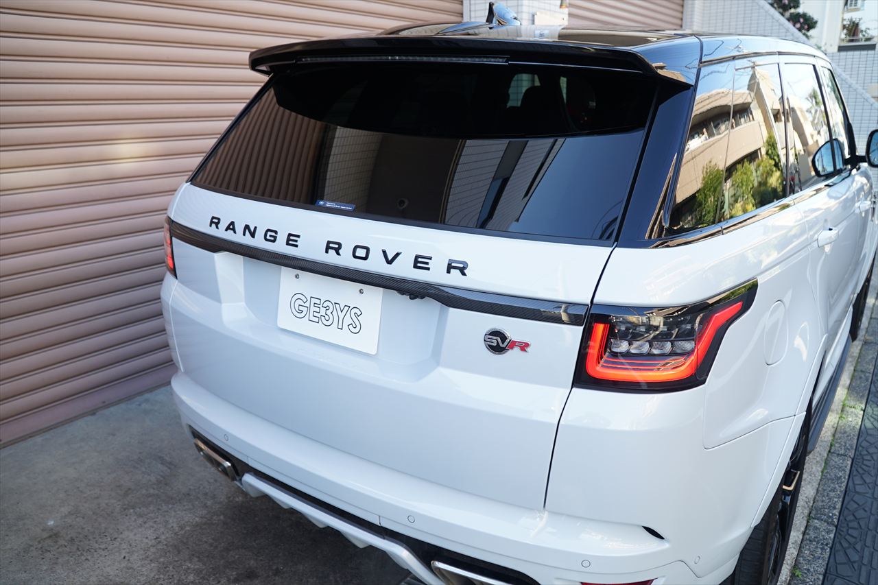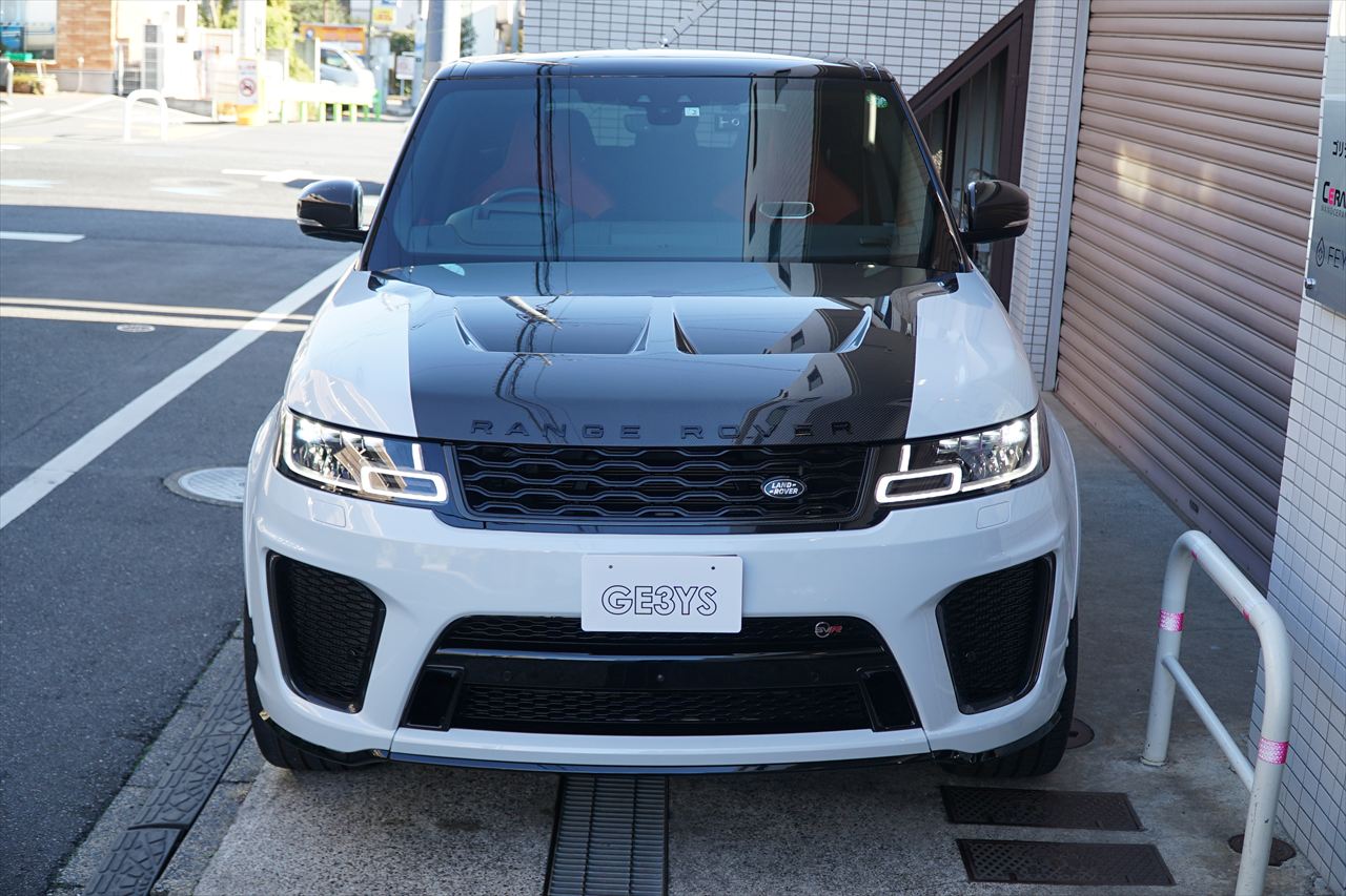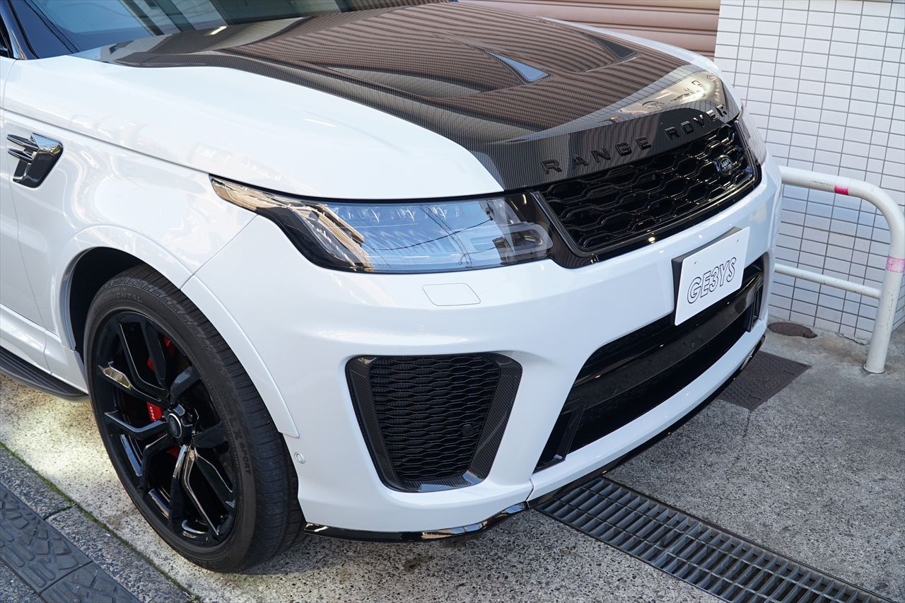 ■「レンジローバースポーツSVR」の入庫でございます!!「ユーロンホワイト」のボディカラーとカーボンの組み合わせは希少!!お早めのご検討をお願いします!!