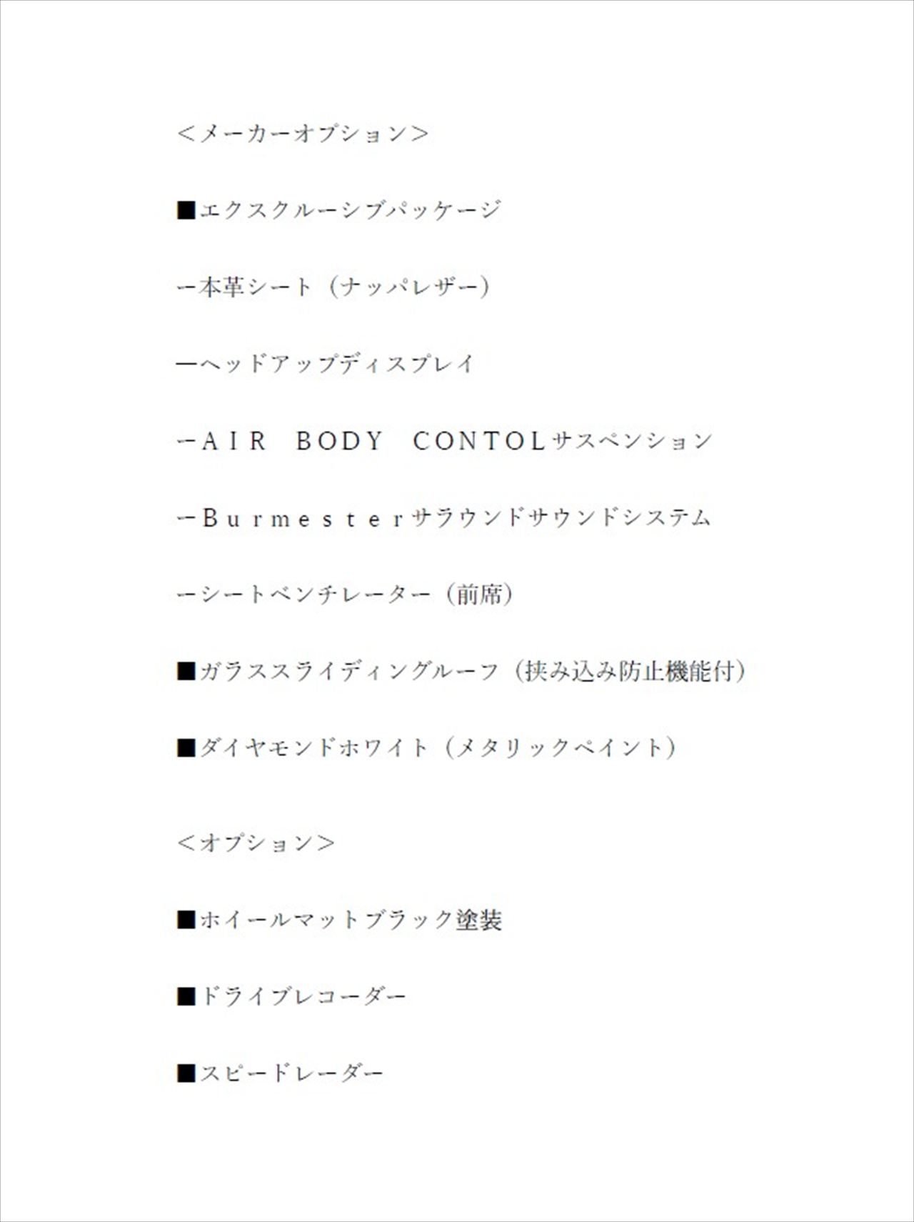 ■マストオプションのエクスクルーシブパッケージが装着されAIR BODY CONTROLサスペンションや、BURMESTERサラウンドシステムなどをしっかり装備!!