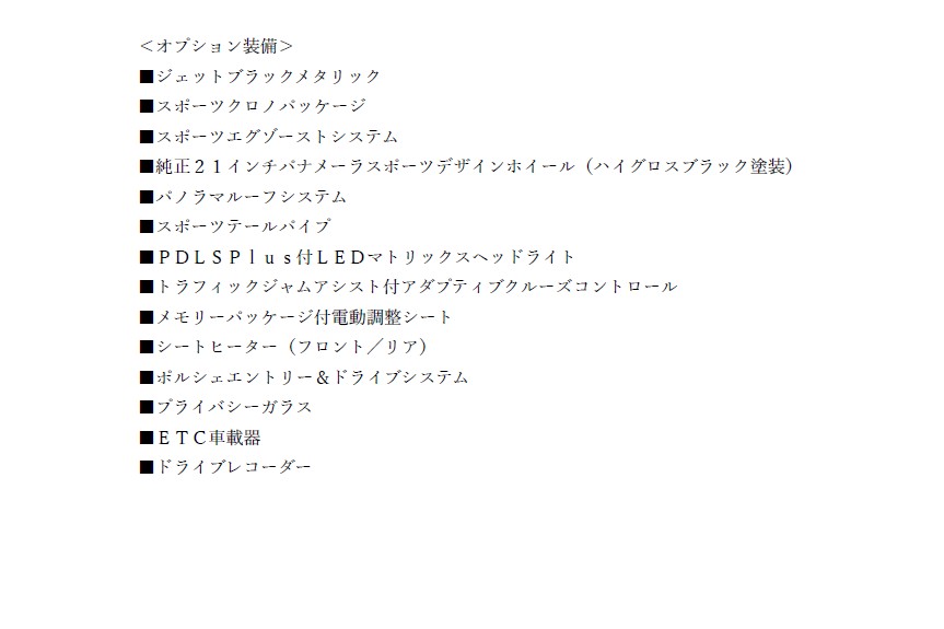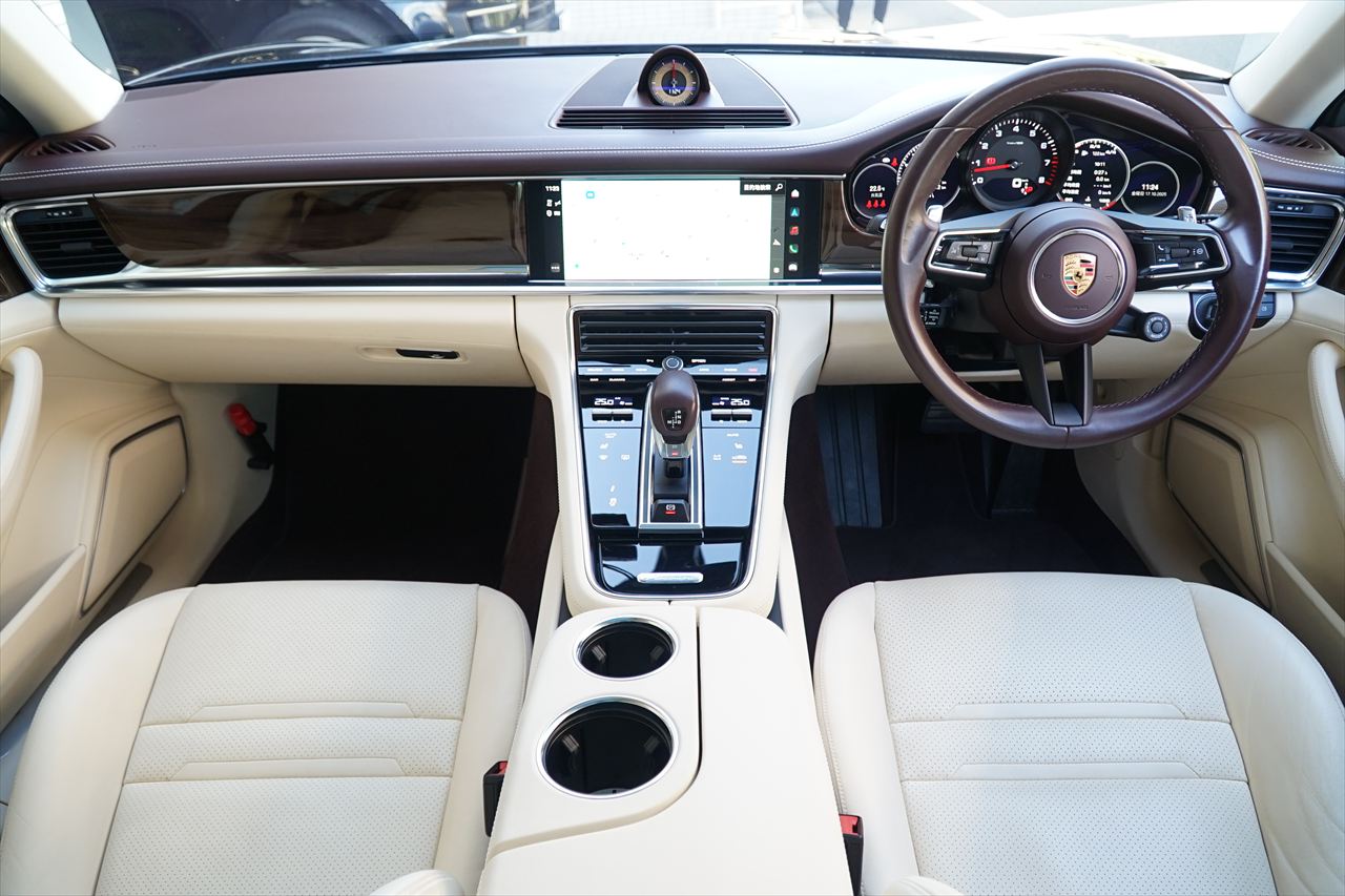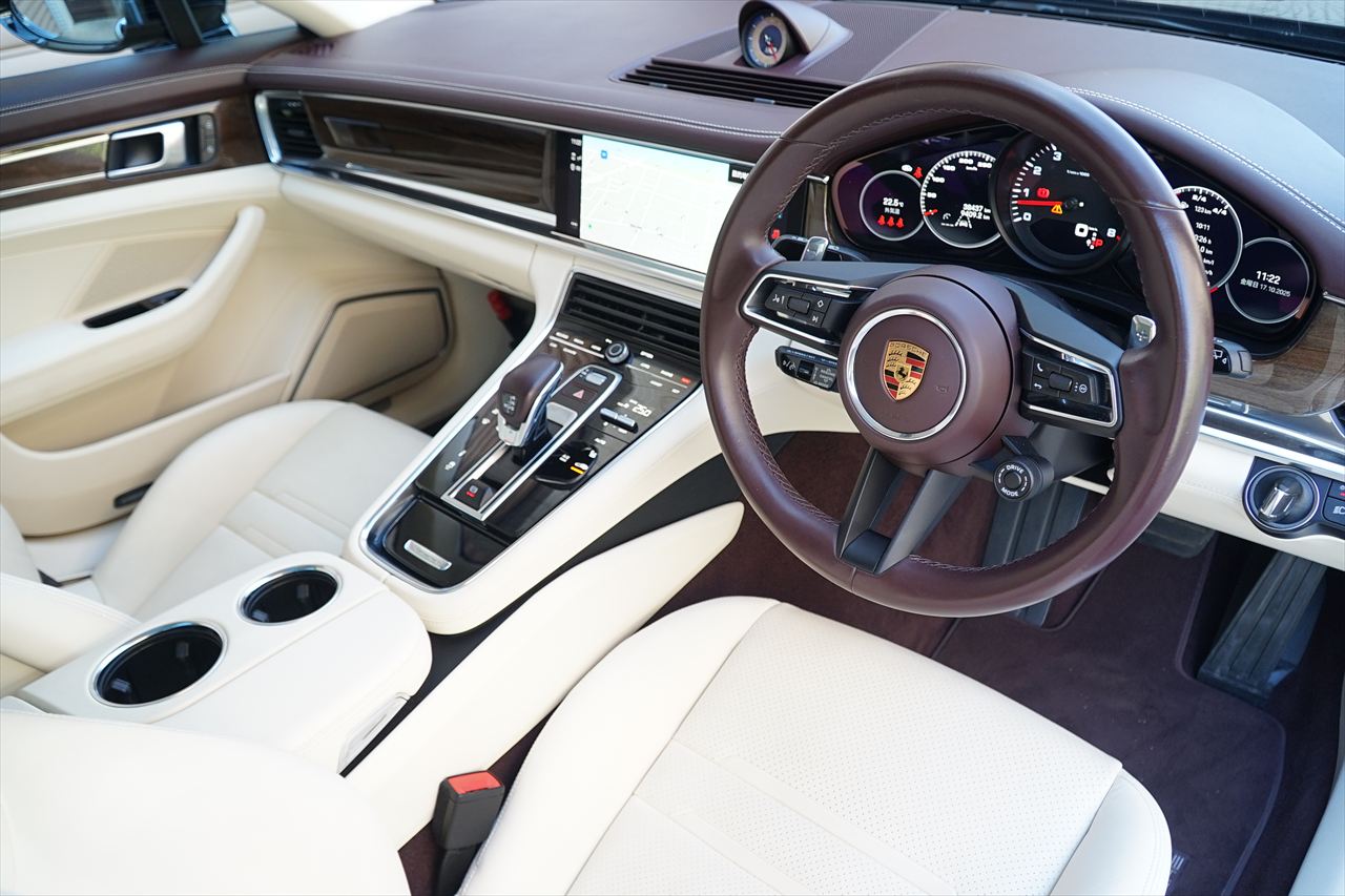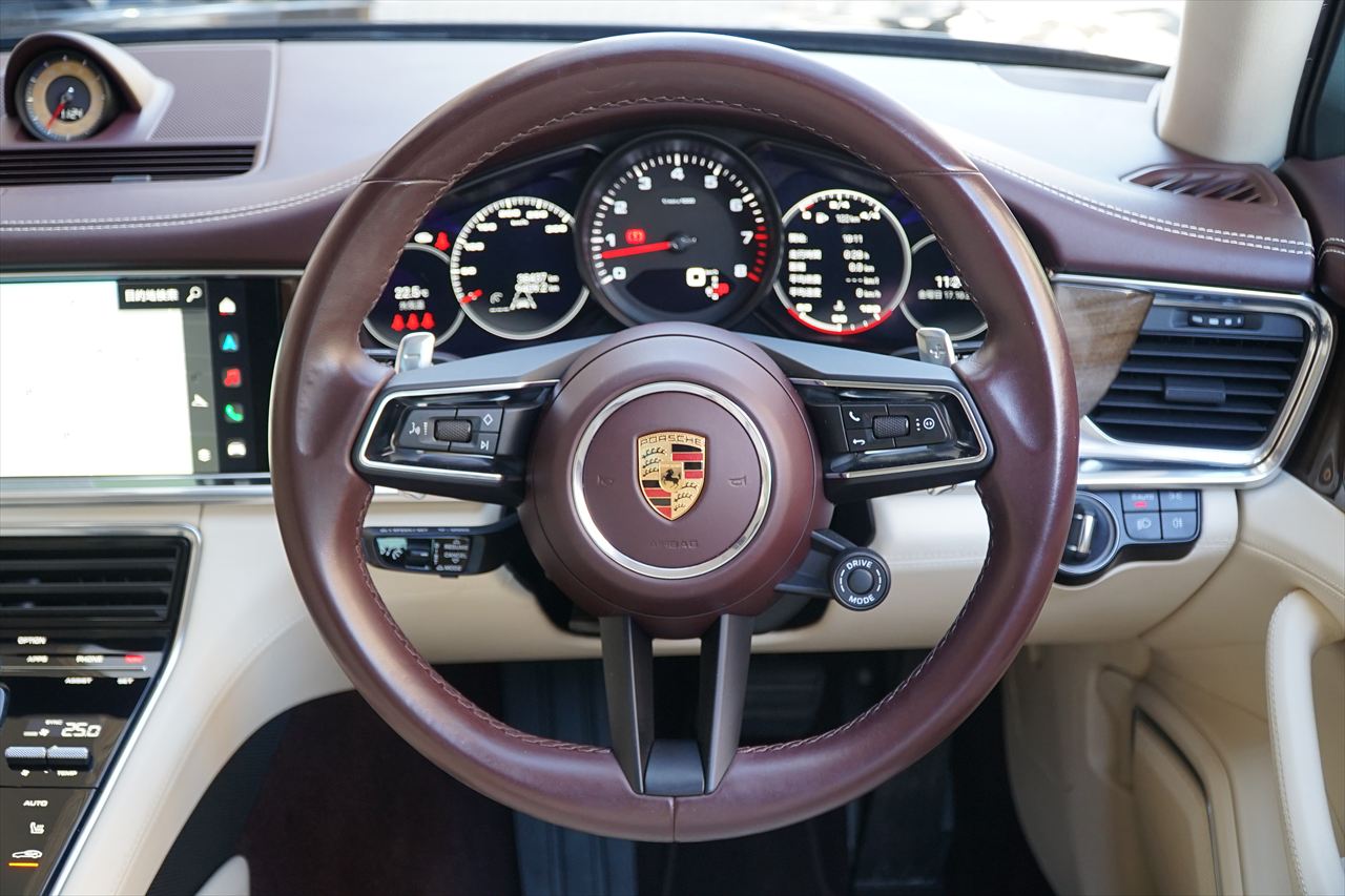 ポルシェの美学と実用性を兼ね備えた4ドアスポーツツアラー、「パナメーラ4スポーツツーリスモ」が入庫致しました!!よりスポーティでスタイリッシュなデザインに、ポルシェらしいダイナミックな走行性能を兼ね備えたモデルでございます。搭載される2.9リッターV6ツインターボエンジンは、最高出力330PS/最大トルク45.9kg・mを発揮し、0-100km/h加速はわずか5.3秒!!ポルシェらしい力強い加速感と滑らかな走りを両立しております。トランスミッションには8速PDK(ポルシェ・ドッペルクップルング)を採用し、あらゆる走行シーンで俊敏かつ快適なドライビングを実現!!ボディカラーは人気の「ジェットブラックメタリック」、インテリアには上質な「マルサラ&クリーム」コンビレザーを採用し、スポーティさと上品さを兼ね備えたコーディネートとなっております。さらに、スポーツクロノパッケージ、スポーツエグゾーストシステム(シルバーテールパイプ)、21インチホイールなど、多数のオプションが装備された1台です!!またワンオーナー車両であり、内外装ともに非常に良好なコンディションを保っておりますので、お問合せが集中することが予想されます。ぜひお早めにご検討ください!!