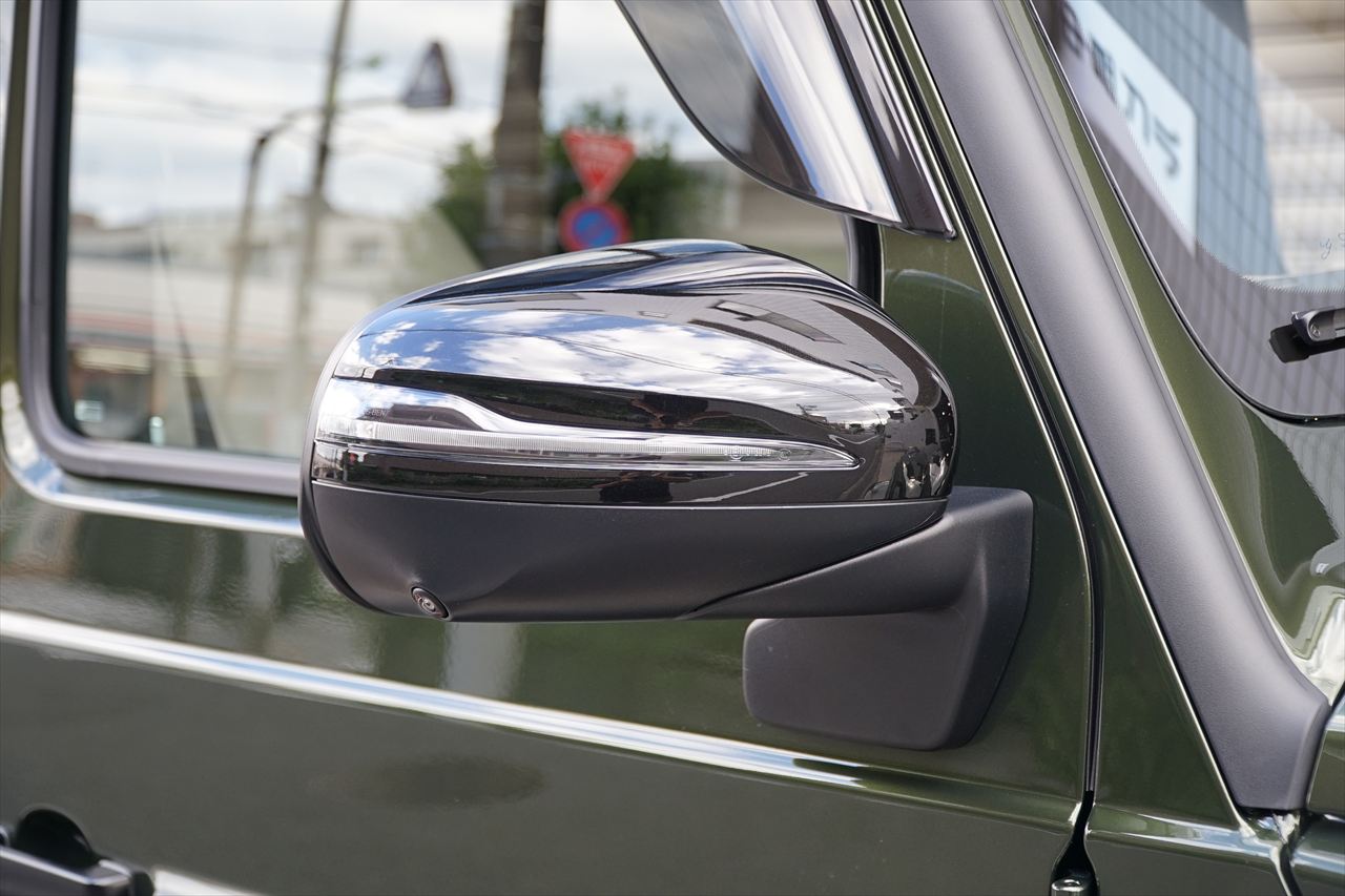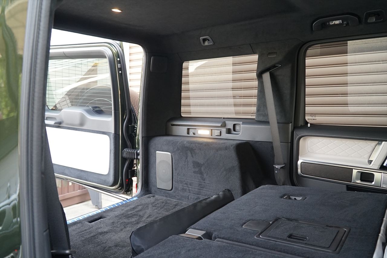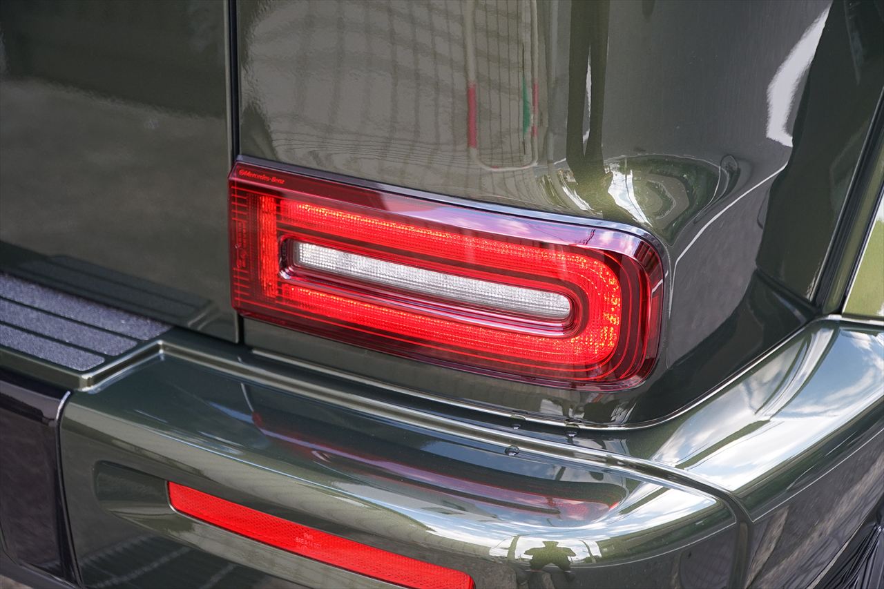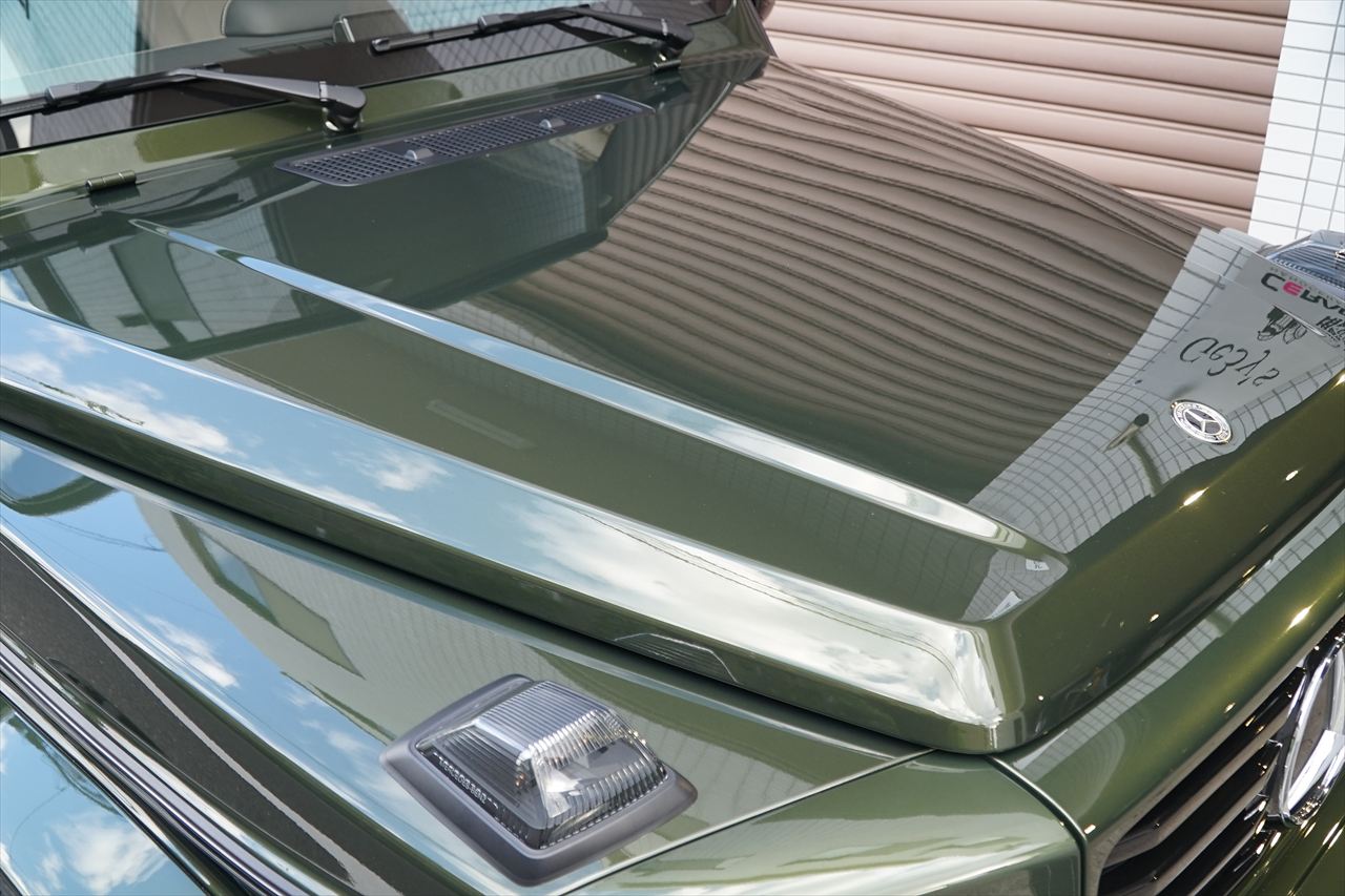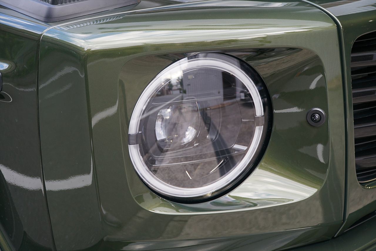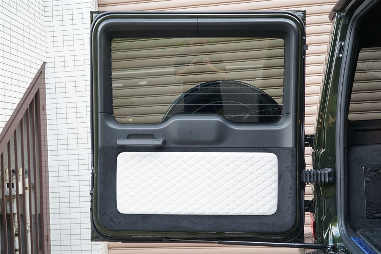 ■マニファクトゥーアオリーブにプラチナホワイトナッパーレザーの組み合わせはGクラスの雰囲気を残しつつラグジュアリーな装いです。