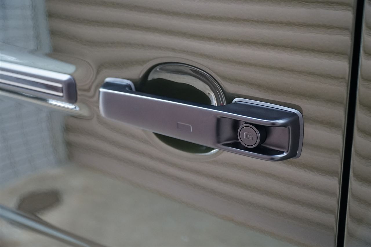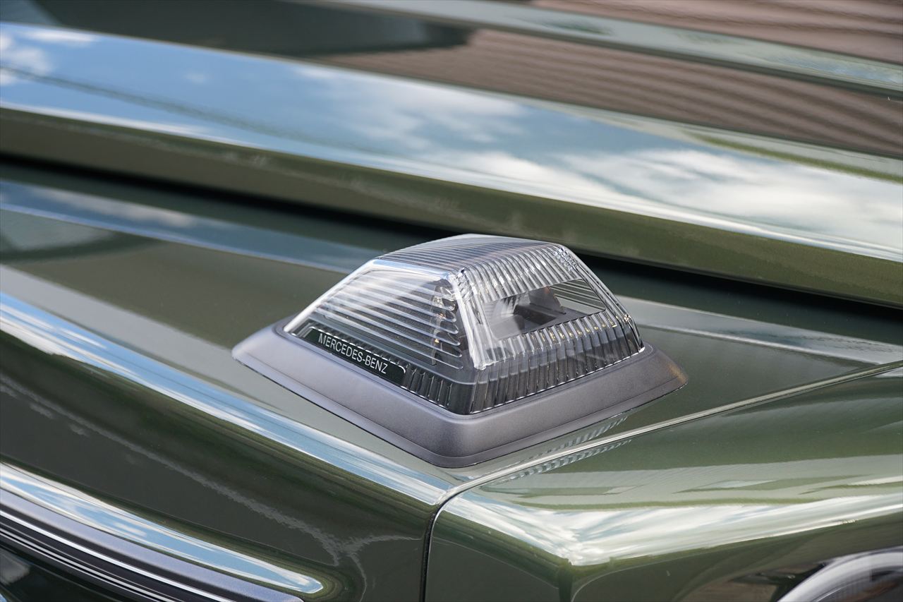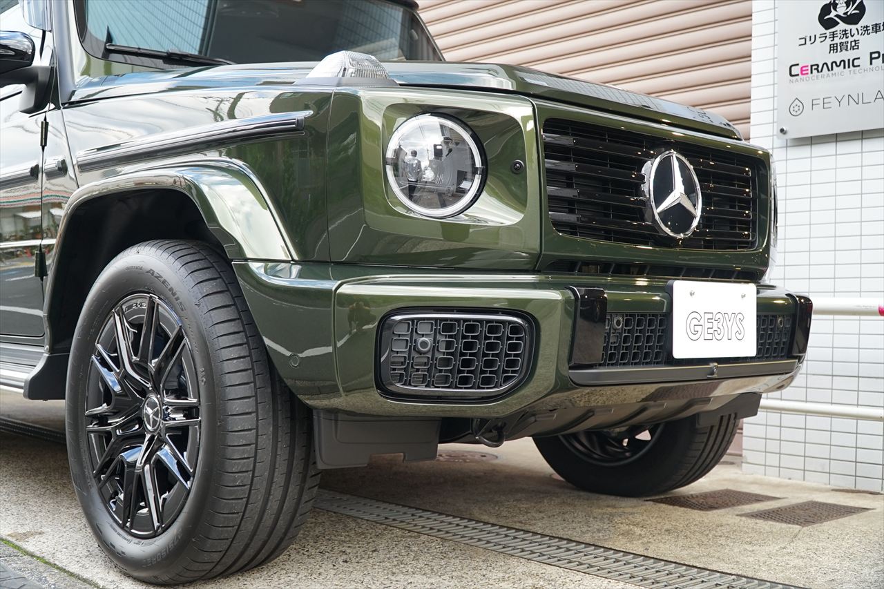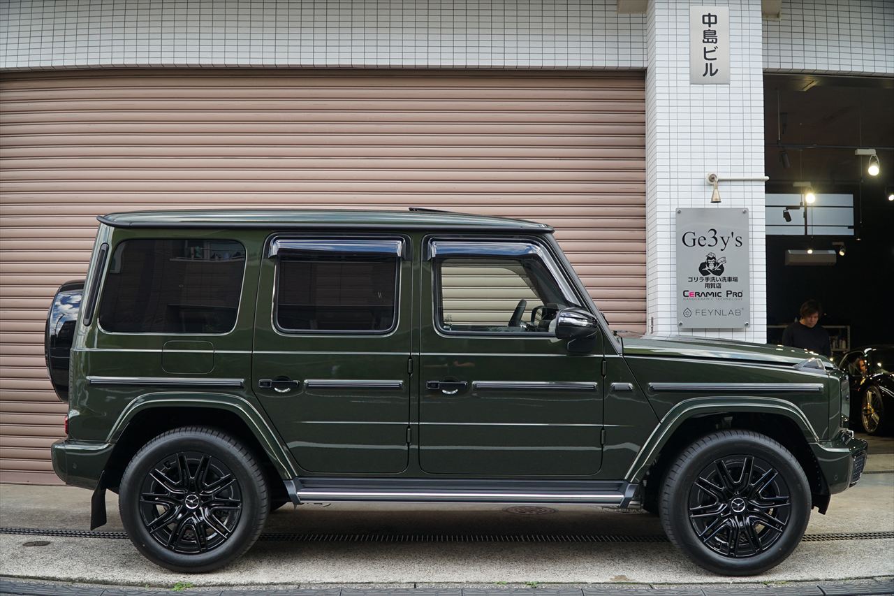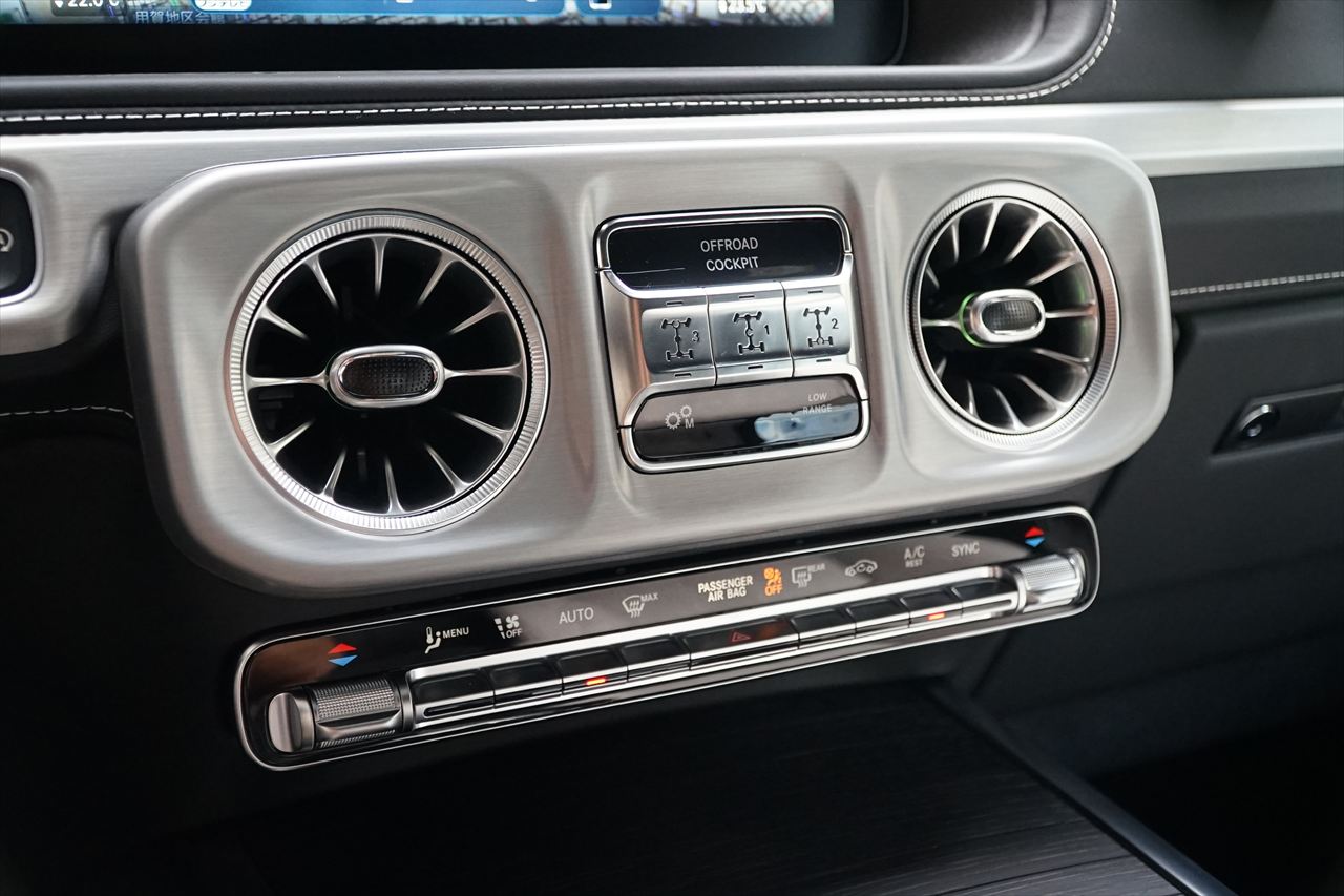 ■マニファクトゥーアオリーブにプラチナホワイトナッパーレザーの組み合わせはGクラスの雰囲気を残しつつラグジュアリーな装いです。