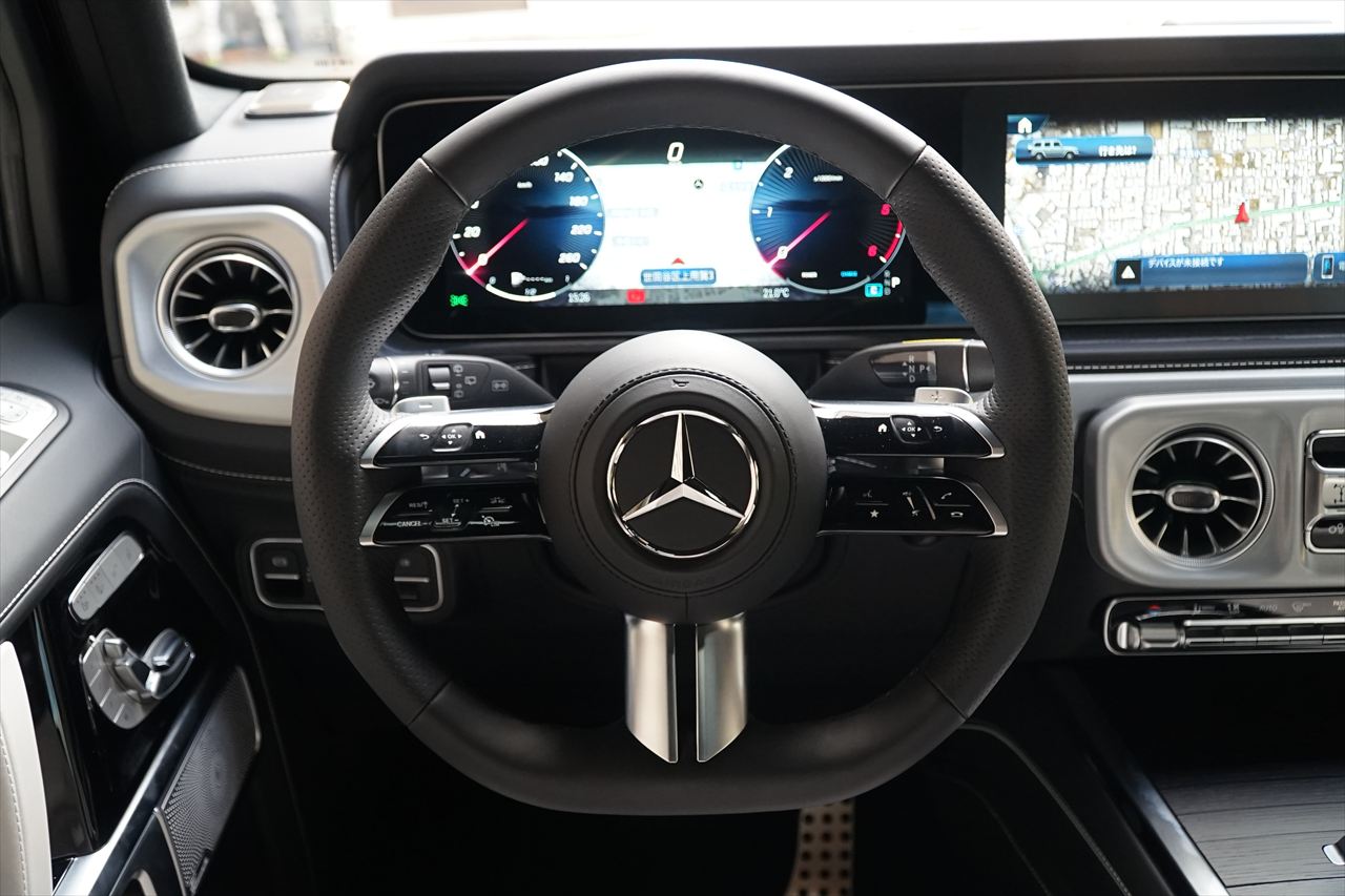 マイナーチェンジされた「G450d」が入庫致しました!!圧倒的な存在感と確かな走破性を誇るメルセデス・ベンツG450dは、伝統のスクエアデザインに最新のテクノロジーを融合させた一台です。3.0リッター直列6気筒ディーゼルエンジンに48Vマイルドハイブリッドシステムを組み合わせ、力強い加速と静粛性を両立。最大トルク750Nmがもたらす余裕の走りは、高速道路から悪路まであらゆるシーンで圧倒的な安定感を発揮します。改良型の4MATICシステムと3つのデフロックが備わり、どんな路面でも確実なトラクションを確保。オンロードでは上質な乗り心地を、オフロードでは本格的な走破性を実現します。インテリアには最新世代のMBUXシステムを搭載し、直感的な操作と快適なコネクティビティを提供。伝統を守りながらも進化を遂げたG450dは、すべての道を自信に変える、新しい時代のGクラスです。この機会をお見逃しなく!!即納車の1台です!!