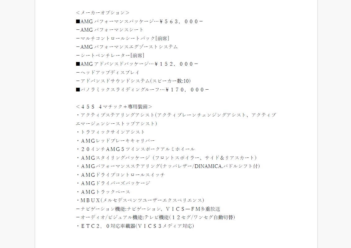 ・AMGスタイリングパッケージ(フロントスポイラー、サイド&リアスカート)