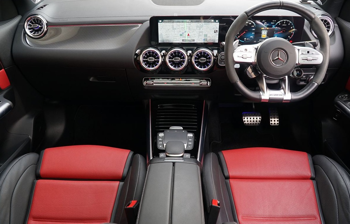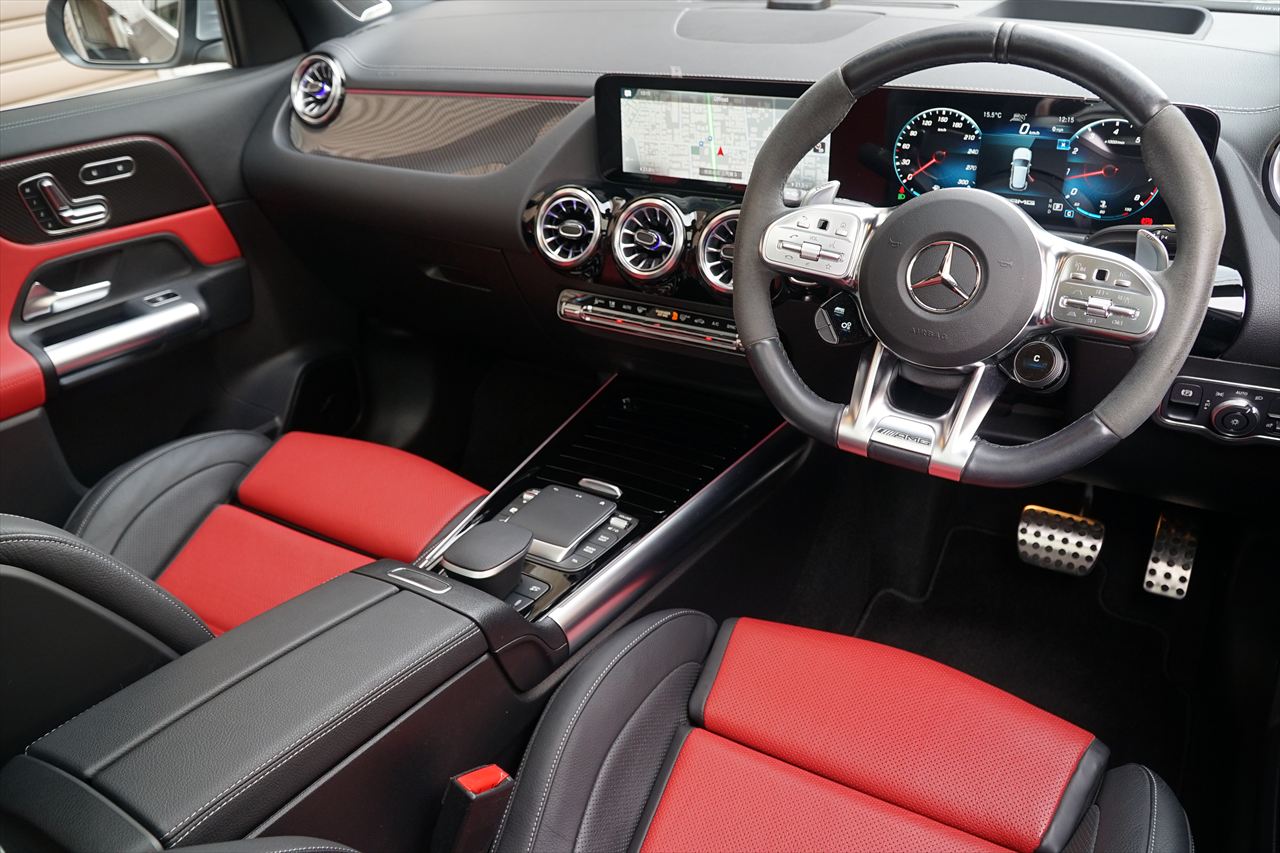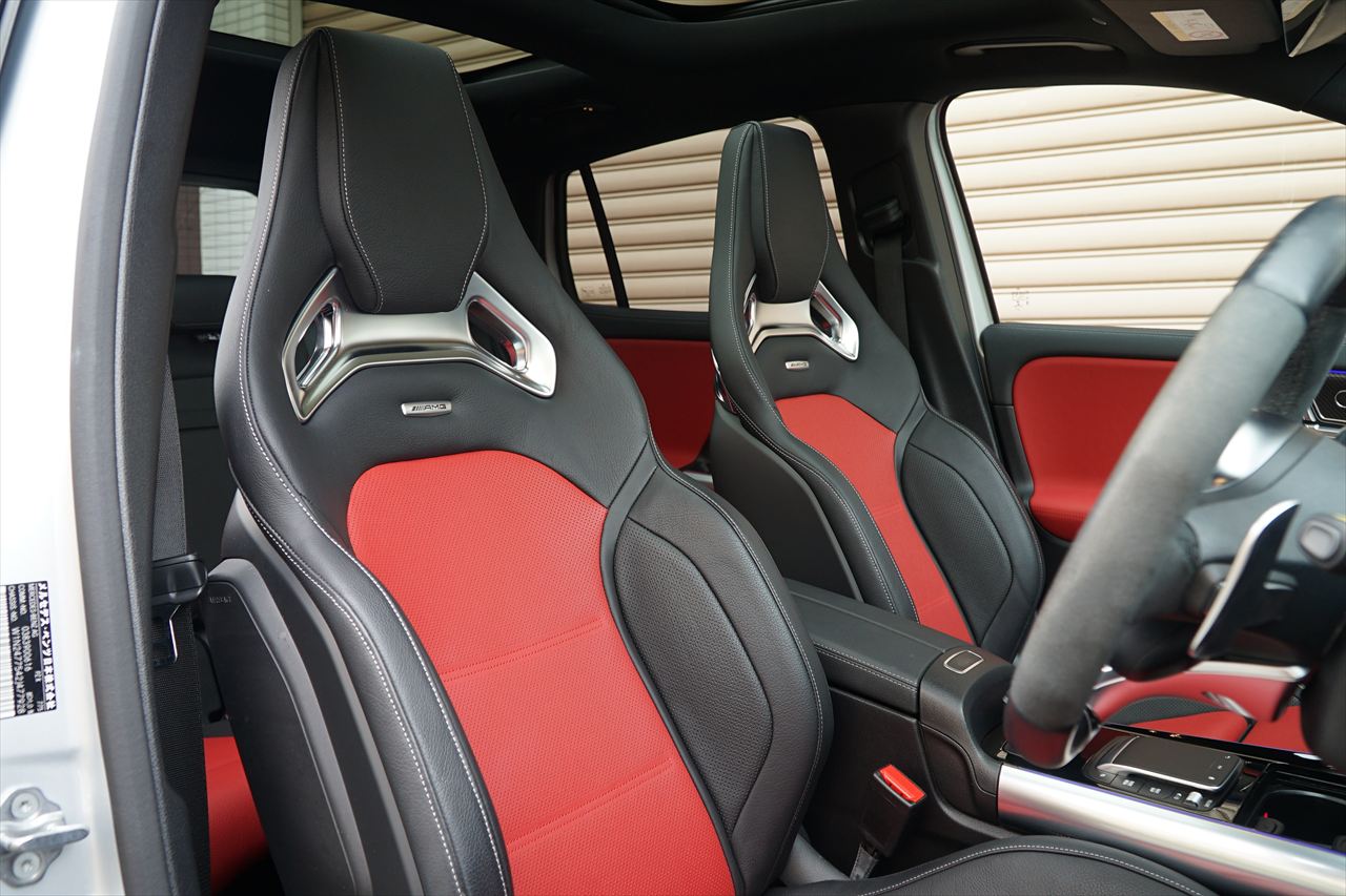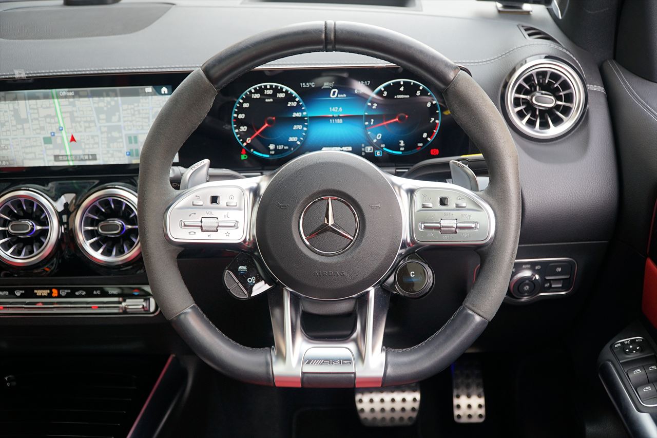 メルセデスAMGのエントリーモデルに位置付けられる、新世代コンパクトSUV「GLA45S」。メルセデス最小のSUVであるGLAをベースに、最高出力421馬力・最大トルク51.0kgmを発生する世界最高出力クラスの2.0L直列4気筒ターボエンジンを搭載。量産2.0Lエンジンとは思えない、まさに規格外のパフォーマンスを誇ります。この強大なパワーを支えるのは、AMG専用にチューニングされた高性能4WDシステム。優れたトラクション性能とレスポンスにより、0-100km/h加速は4秒台と、ポルシェ911に迫る動力性能を実現しています。ブレーキにはフロントにモノブロック対向4ピストンキャリパーを採用し、45系AMG共通の本格的な足回りを備えます。インテリアには、深いバケット形状と高い剛性を誇るAMGパフォーマンスシートを装着。こちらは「AMGパフォーマンスパッケージ」に含まれ、AMGパフォーマンスステアリングや、走りの質を高めるAMGパフォーマンスエグゾーストシステムも同時に装備されています。量産車でありながら、半ばチューニングカーの領域とも言える圧倒的な性能。それでいて、日常使いもこなせる快適性とメーカー保証を両立させている点こそ、メルセデスAMGの真骨頂です。ぜひその過激かつ洗練されたパフォーマンスを、実際に体感してください。