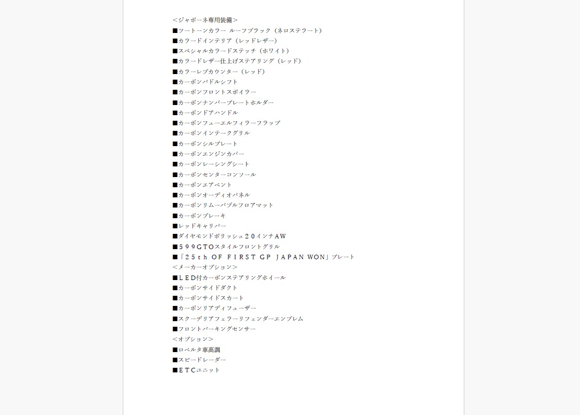 特別なフェラーリ・カリフォルニア30を入庫致しました!!1987年に鈴鹿サーキットで開催されたF1日本グランプリでスクーデリア・フェラーリが優勝してから25周年を記念した特別仕様車で、日本のみ10台限定車、それが「ジャポーネ」!!ボディはビアンコアヴスと呼ばれるホワイト、ルーフはブラックのツートーン、インテリアは鮮やかな赤で統一され、オープンにすると、白と赤という日本をイメージさせるコントラストがあらわれます!!わずか10台のみが生産された特別仕様車で、その証はセンターコンソールに日本の国旗と、スクーデリア・フェラーリの初勝利から25周年を記念する「25th OF FIRST GP JAPAN WON」の特別記念プレートが装着されております。また、センスの良いカスタムが施されたお車で、ロベルタ車高調が装着されております。スーパーカーの要素もあり、日常の足としても使えるカリフォルニア、是非お勧めしたいお車です!!